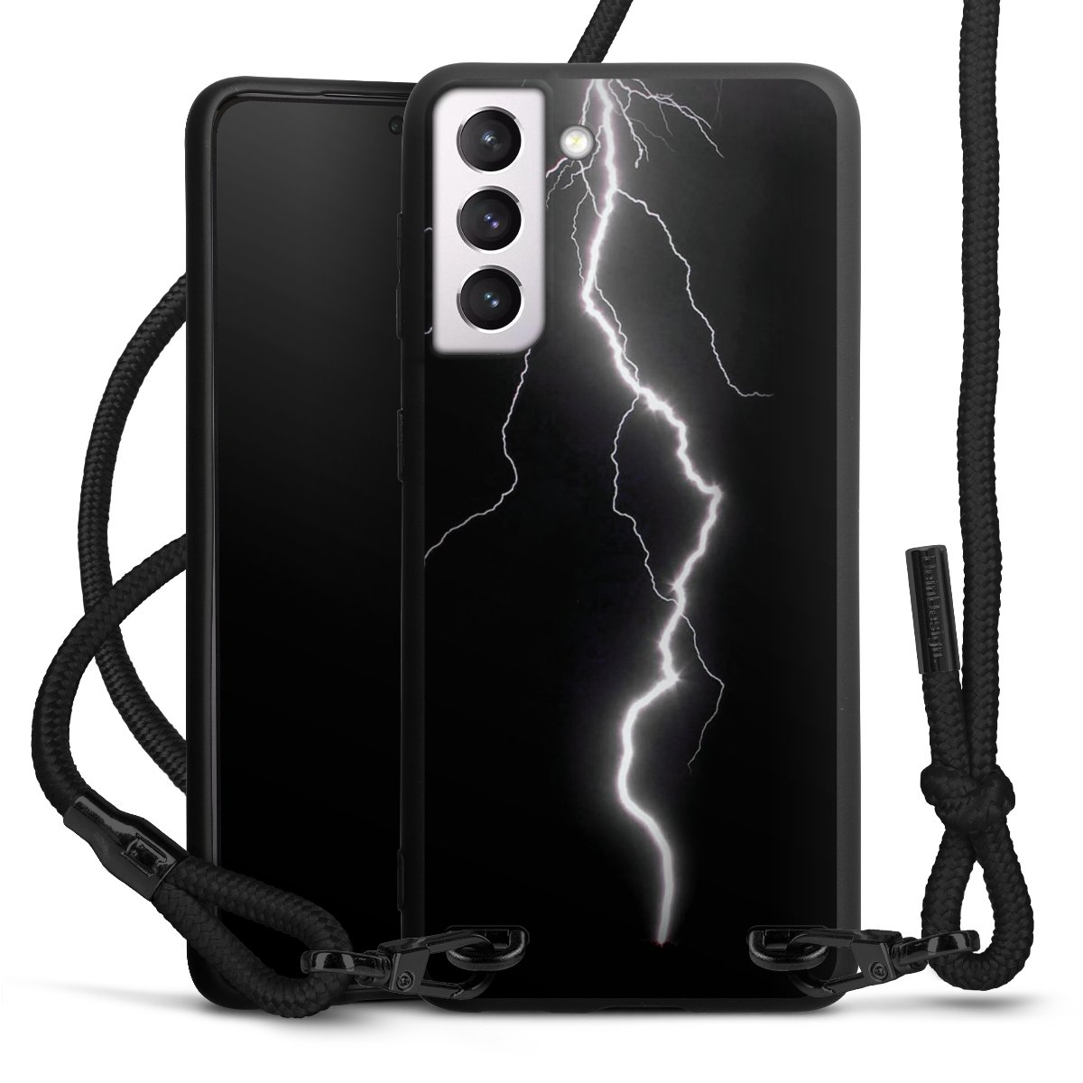 The matt black silicone case is made of flexible TPU (thermoplastic polyurethane) and offers robust protection. The durable, unbreakable material makes the cover flexible and dimensionally stable at the same time. The matte surface makes your design stand out more and is less susceptible to fingerprints and dirt. The stylish trend accessory fits comfortably in the hand and is perfectly complemented by the fabric (polyester) mobile phone strap. The braided fabric strap is approx. 1.70 metres long with a diameter of approx. 0.5 cm. Due to the special knotting technique, the length of the strap can be adjusted by simply pulling it, so that you can adapt it individually to your wishes. The practical case to wear around your neck is available with the fabric strap in black. As a little icing on the cake, we have provided the strap with a chic metal fastener in matt black. The strap is securely fastened to the case with loops made of high-quality genuine leather and press studs. The ends of the fabric strap are covered with metallic end caps and thus protected from fraying.