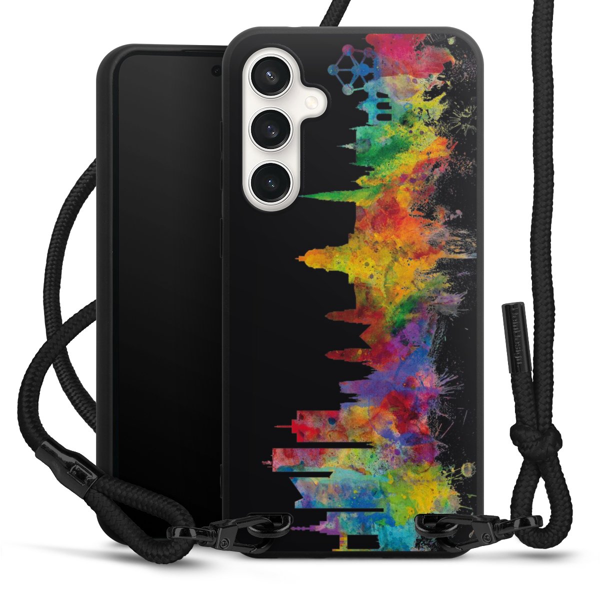 We use the solid direct print process for this phone case, which is why the print area only covers the back and the edge remains unprinted. The case to wear around your neck can be ordered unprinted, fully printed, or partially printed. For your design, either choose one of our exclusive shop motifs or get creative and create your own design, for example with photos and overlays. Design your own personal trend accessory and make an individual statement on the streets!