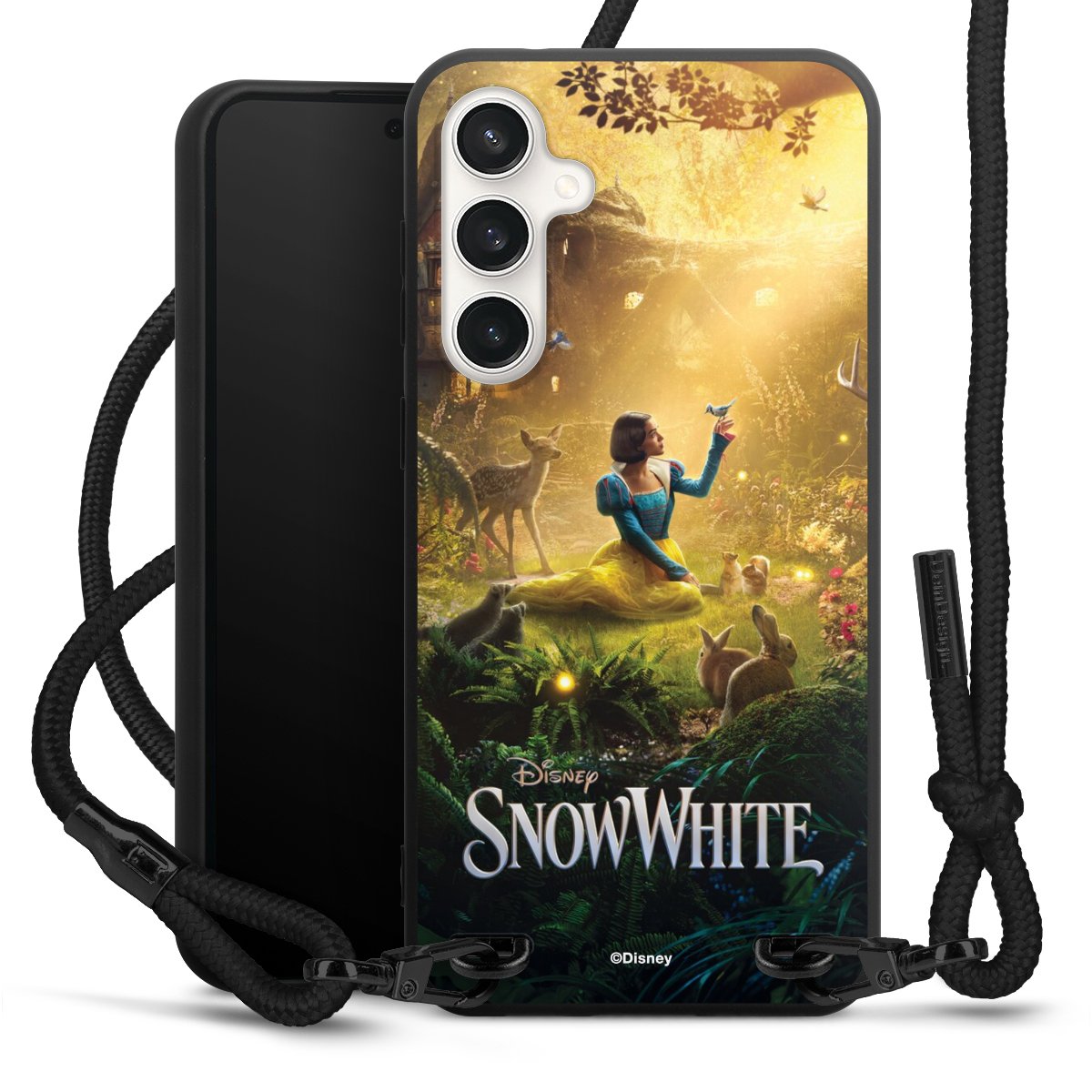 The matt black silicone case is made of flexible TPU (thermoplastic polyurethane) and offers robust protection. The durable, unbreakable material makes the cover flexible and dimensionally stable at the same time. The matte surface makes your design stand out more and is less susceptible to fingerprints and dirt. The stylish trend accessory fits comfortably in the hand and is perfectly complemented by the fabric (polyester) mobile phone strap. The braided fabric strap is approx. 1.70 metres long with a diameter of approx. 0.5 cm. Due to the special knotting technique, the length of the strap can be adjusted by simply pulling it, so that you can adapt it individually to your wishes. The practical case to wear around your neck is available with the fabric strap in black. As a little icing on the cake, we have provided the strap with a chic metal fastener in matt black. The strap is securely fastened to the case with loops made of high-quality genuine leather and press studs. The ends of the fabric strap are covered with metallic end caps and thus protected from fraying.