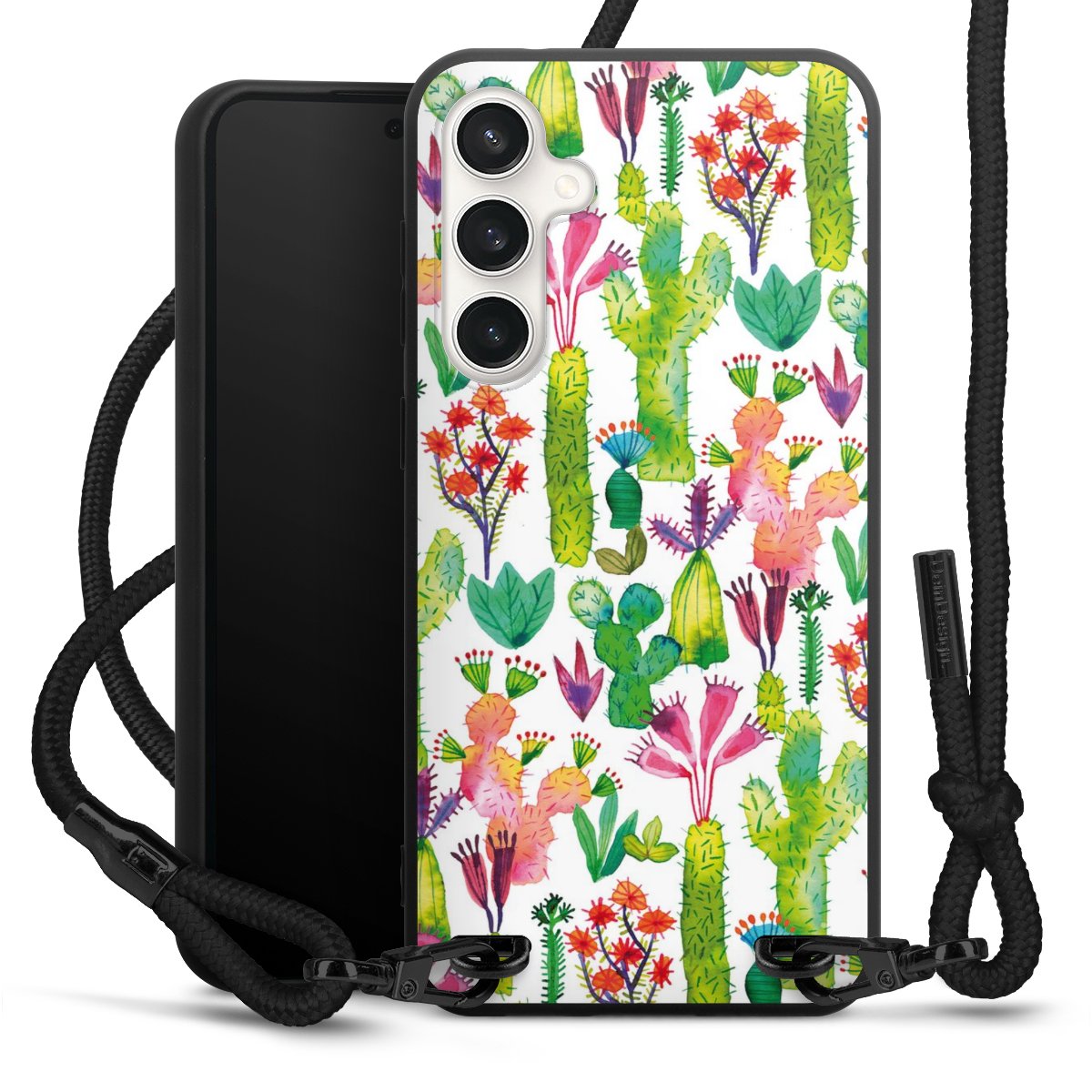 We use the solid direct print process for this phone case, which is why the print area only covers the back and the edge remains unprinted. The case to wear around your neck can be ordered unprinted, fully printed, or partially printed. For your design, either choose one of our exclusive shop motifs or get creative and create your own design, for example with photos and overlays. Design your own personal trend accessory and make an individual statement on the streets!