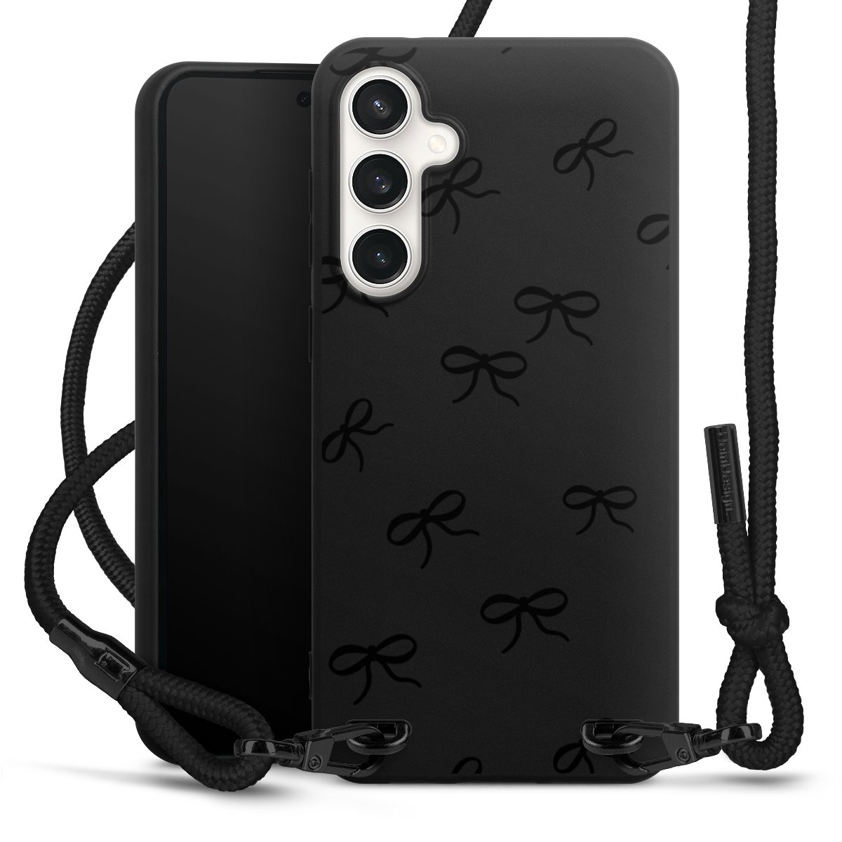 Pure Black: Phone case, fabric strap and metal details in stylish matt black.