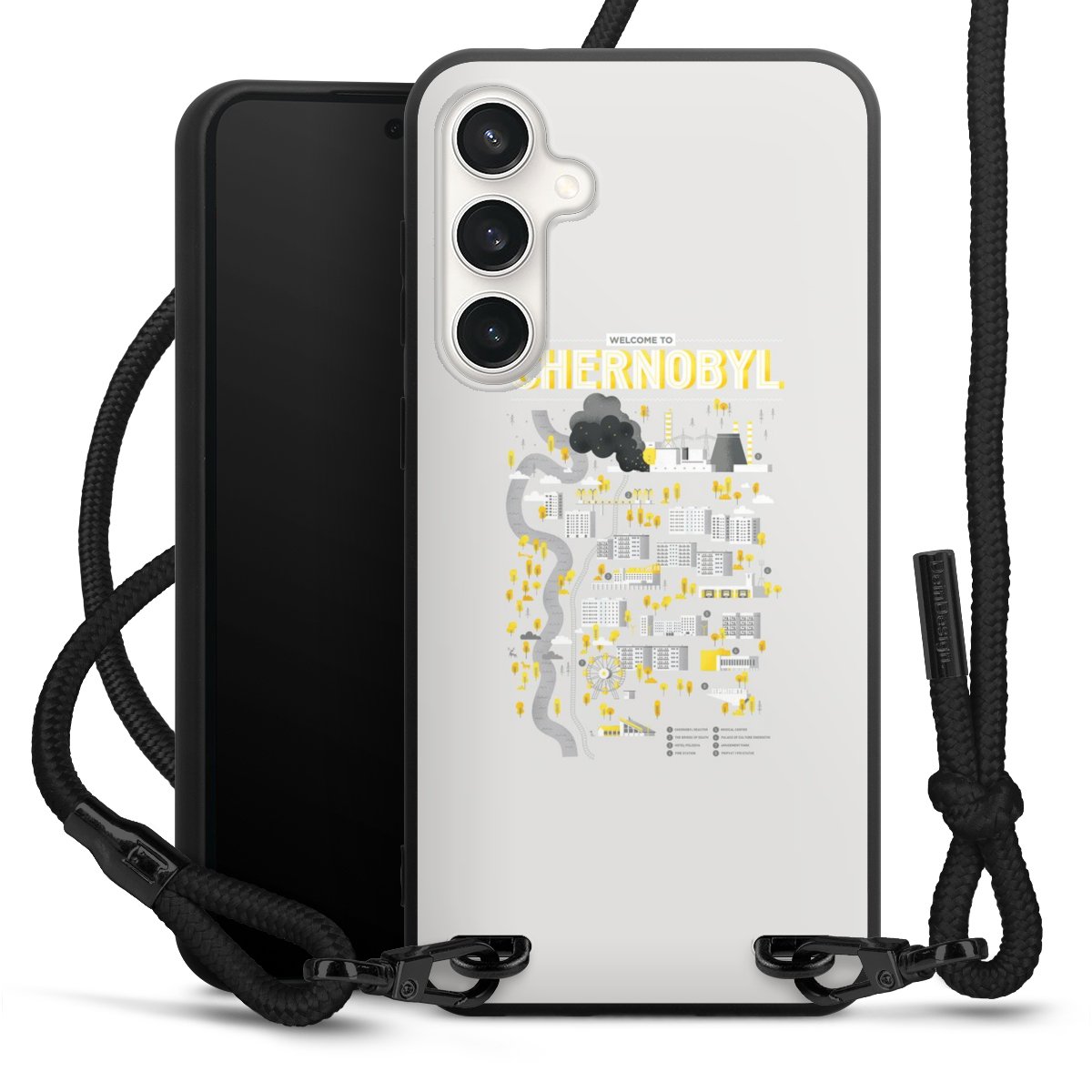 Pure Black: Phone case, fabric strap and metal details in stylish matt black.