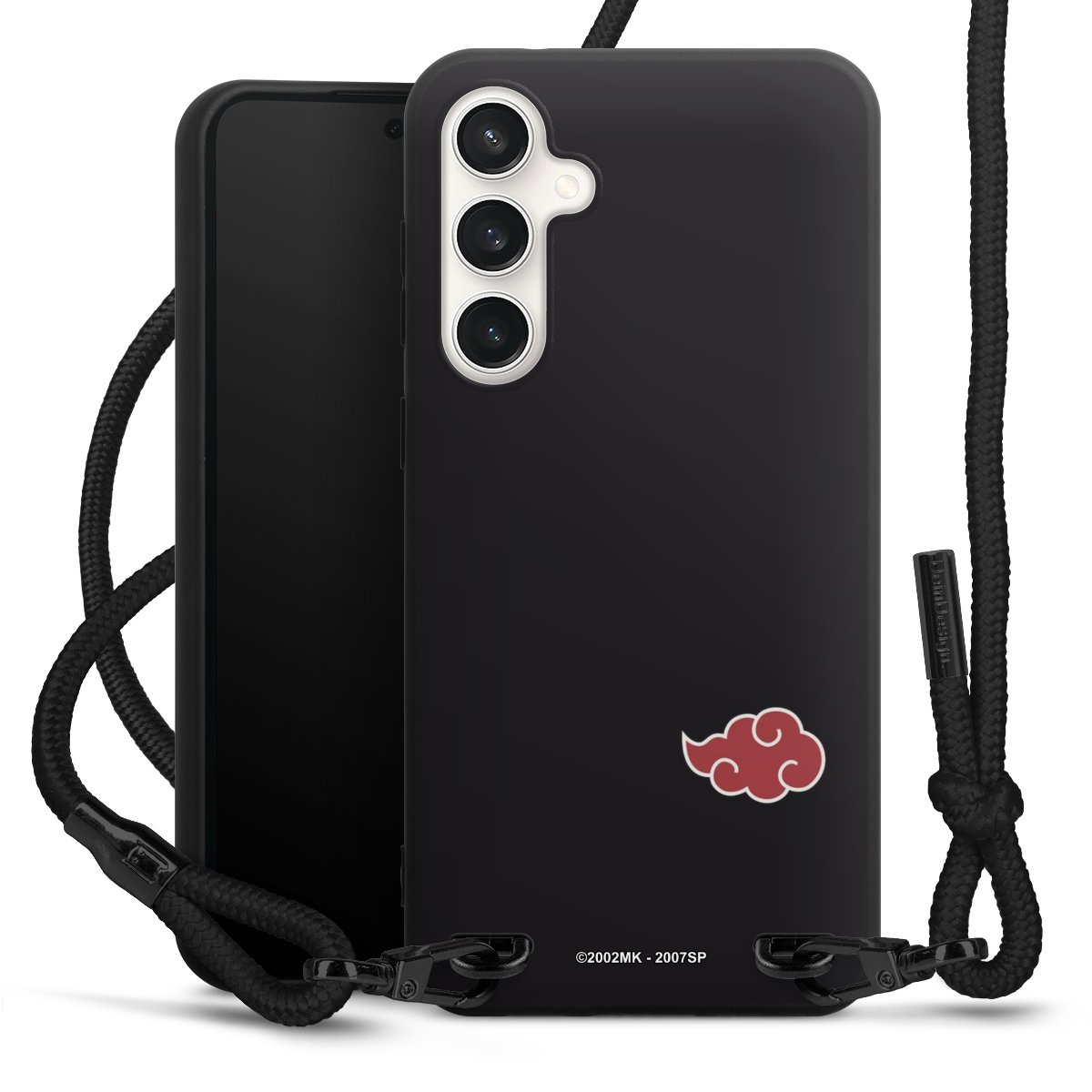 The matt black silicone case is made of flexible TPU (thermoplastic polyurethane) and offers robust protection. The durable, unbreakable material makes the cover flexible and dimensionally stable at the same time. The matte surface makes your design stand out more and is less susceptible to fingerprints and dirt. The stylish trend accessory fits comfortably in the hand and is perfectly complemented by the fabric (polyester) mobile phone strap. The braided fabric strap is approx. 1.70 metres long with a diameter of approx. 0.5 cm. Due to the special knotting technique, the length of the strap can be adjusted by simply pulling it, so that you can adapt it individually to your wishes. The practical case to wear around your neck is available with the fabric strap in black. As a little icing on the cake, we have provided the strap with a chic metal fastener in matt black. The strap is securely fastened to the case with loops made of high-quality genuine leather and press studs. The ends of the fabric strap are covered with metallic end caps and thus protected from fraying.