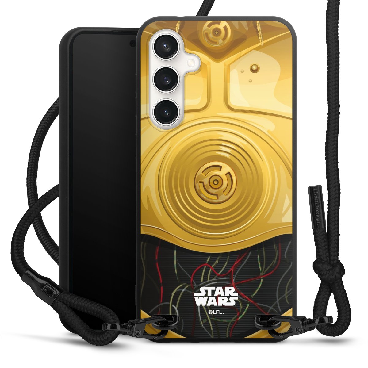 The matt black silicone case is made of flexible TPU (thermoplastic polyurethane) and offers robust protection. The durable, unbreakable material makes the cover flexible and dimensionally stable at the same time. The matte surface makes your design stand out more and is less susceptible to fingerprints and dirt. The stylish trend accessory fits comfortably in the hand and is perfectly complemented by the fabric (polyester) mobile phone strap. The braided fabric strap is approx. 1.70 metres long with a diameter of approx. 0.5 cm. Due to the special knotting technique, the length of the strap can be adjusted by simply pulling it, so that you can adapt it individually to your wishes. The practical case to wear around your neck is available with the fabric strap in black. As a little icing on the cake, we have provided the strap with a chic metal fastener in matt black. The strap is securely fastened to the case with loops made of high-quality genuine leather and press studs. The ends of the fabric strap are covered with metallic end caps and thus protected from fraying.