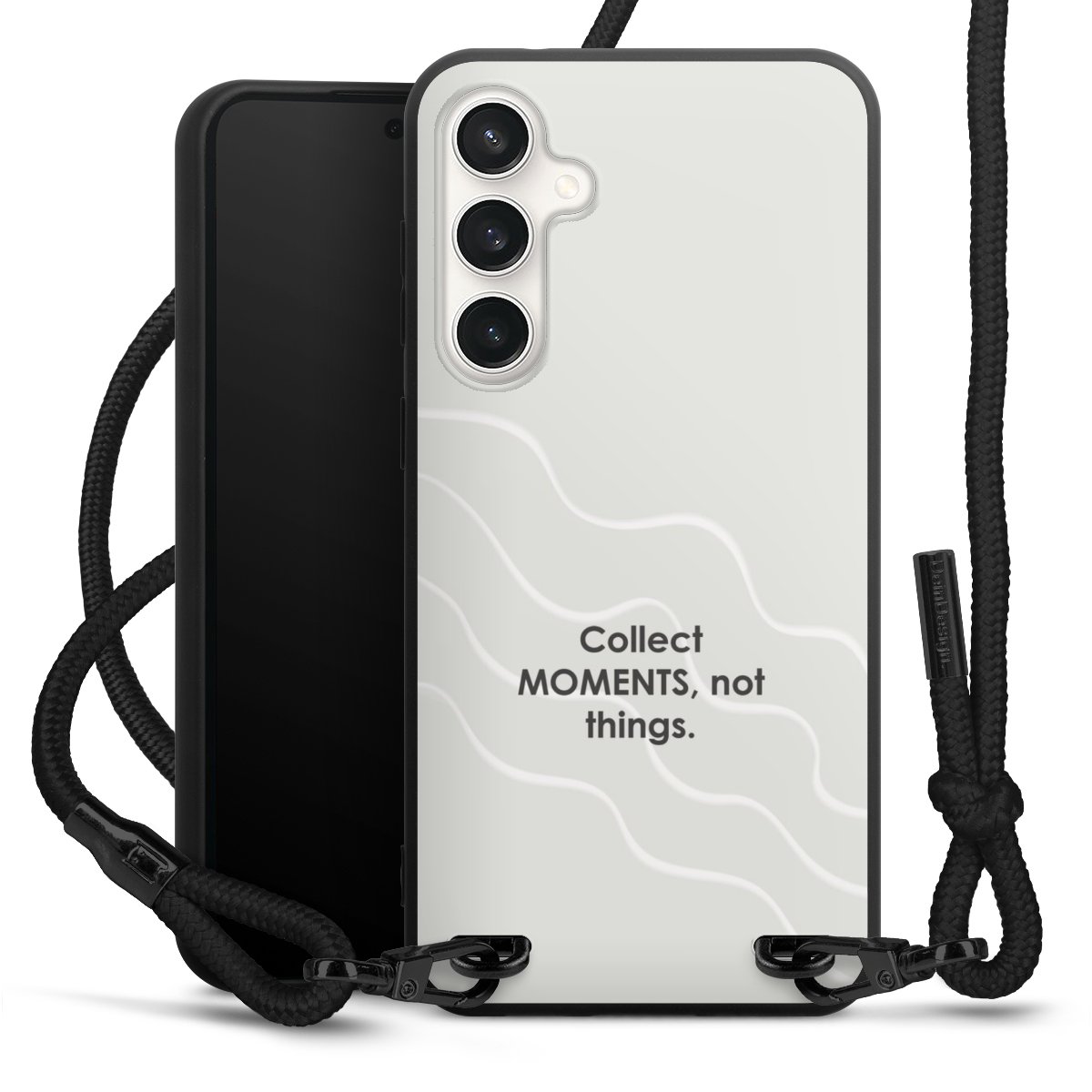 We use the solid direct print process for this phone case, which is why the print area only covers the back and the edge remains unprinted. The case to wear around your neck can be ordered unprinted, fully printed, or partially printed. For your design, either choose one of our exclusive shop motifs or get creative and create your own design, for example with photos and overlays. Design your own personal trend accessory and make an individual statement on the streets!