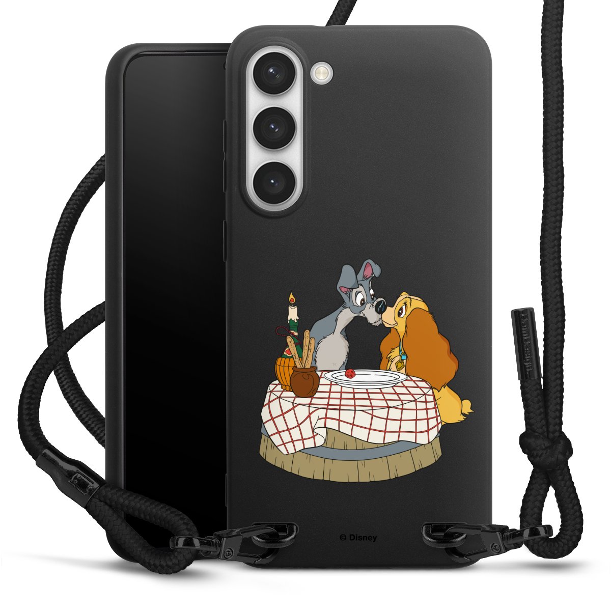 The matt black silicone case is made of flexible TPU (thermoplastic polyurethane) and offers robust protection. The durable, unbreakable material makes the cover flexible and dimensionally stable at the same time. The matte surface makes your design stand out more and is less susceptible to fingerprints and dirt. The stylish trend accessory fits comfortably in the hand and is perfectly complemented by the fabric (polyester) mobile phone strap. The braided fabric strap is approx. 1.70 metres long with a diameter of approx. 0.5 cm. Due to the special knotting technique, the length of the strap can be adjusted by simply pulling it, so that you can adapt it individually to your wishes. The practical case to wear around your neck is available with the fabric strap in black. As a little icing on the cake, we have provided the strap with a chic metal fastener in matt black. The strap is securely fastened to the case with loops made of high-quality genuine leather and press studs. The ends of the fabric strap are covered with metallic end caps and thus protected from fraying.
