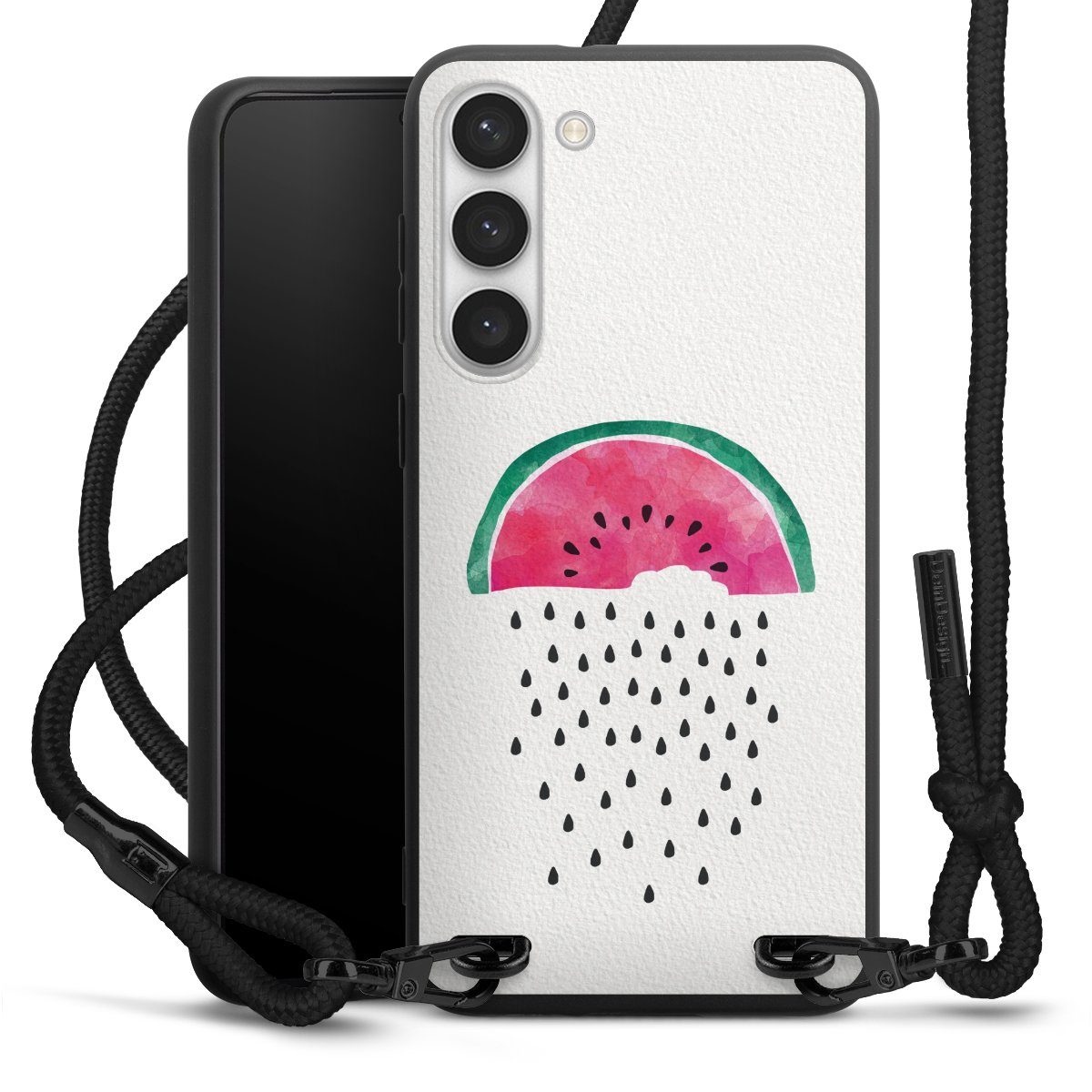 We use the solid direct print process for this phone case, which is why the print area only covers the back and the edge remains unprinted. The case to wear around your neck can be ordered unprinted, fully printed, or partially printed. For your design, either choose one of our exclusive shop motifs or get creative and create your own design, for example with photos and overlays. Design your own personal trend accessory and make an individual statement on the streets!