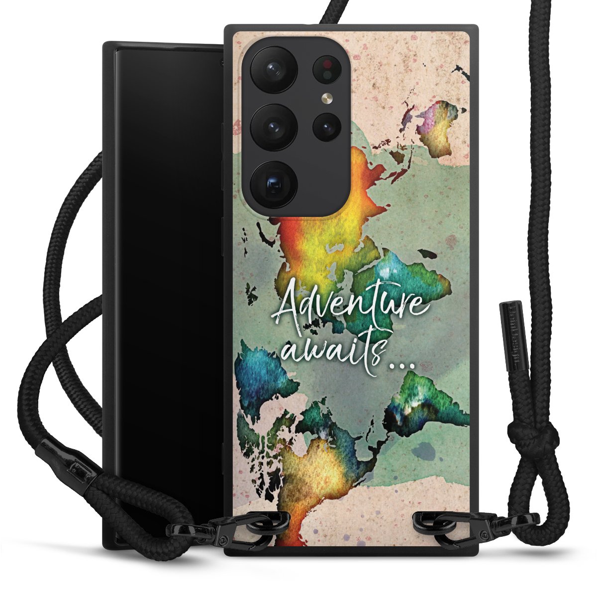 We use the solid direct print process for this phone case, which is why the print area only covers the back and the edge remains unprinted. The case to wear around your neck can be ordered unprinted, fully printed, or partially printed. For your design, either choose one of our exclusive shop motifs or get creative and create your own design, for example with photos and overlays. Design your own personal trend accessory and make an individual statement on the streets!