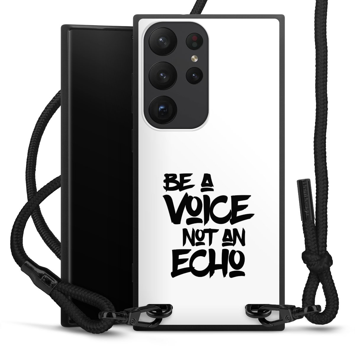 We use the solid direct print process for this phone case, which is why the print area only covers the back and the edge remains unprinted. The case to wear around your neck can be ordered unprinted, fully printed, or partially printed. For your design, either choose one of our exclusive shop motifs or get creative and create your own design, for example with photos and overlays. Design your own personal trend accessory and make an individual statement on the streets!