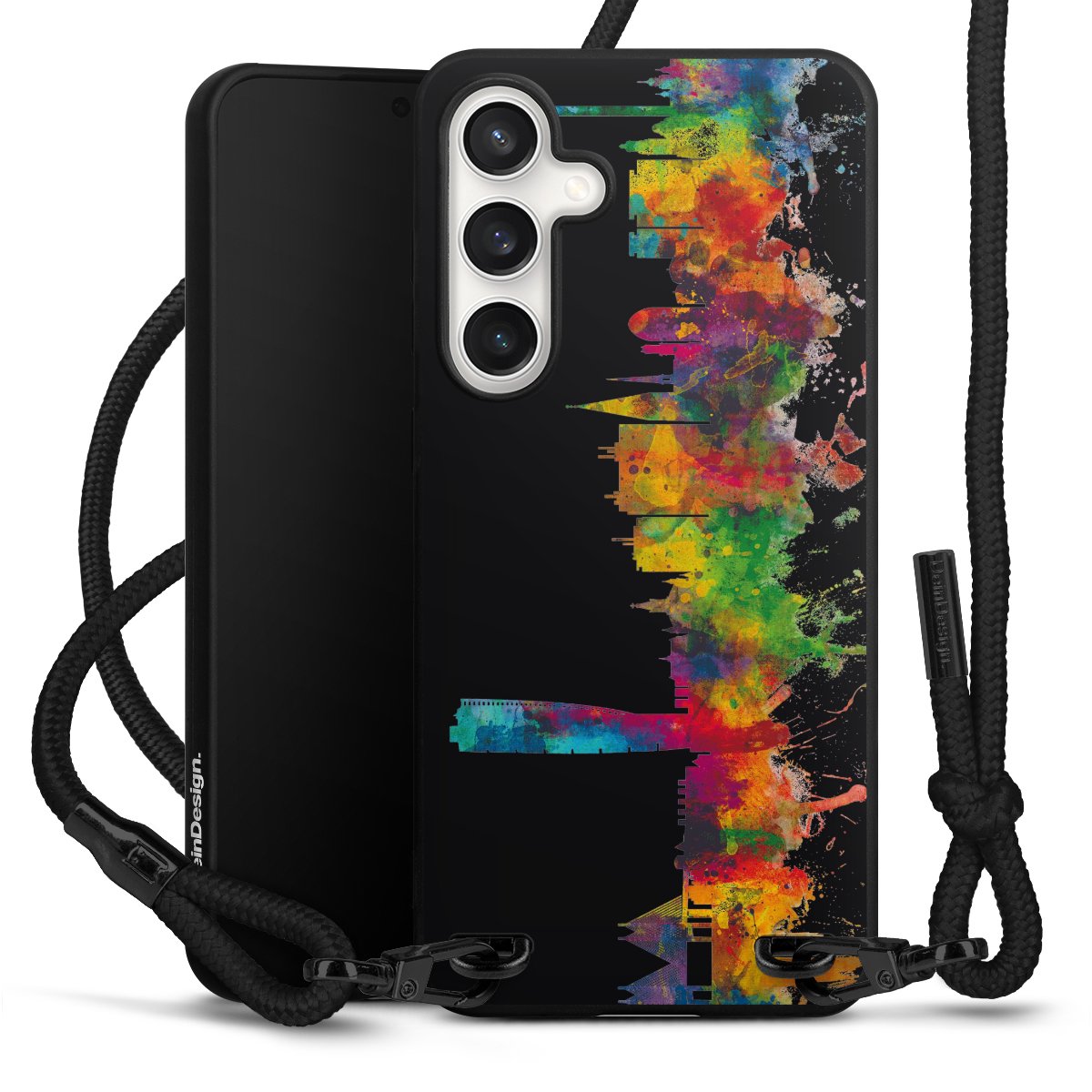 We use the solid direct print process for this phone case, which is why the print area only covers the back and the edge remains unprinted. The case to wear around your neck can be ordered unprinted, fully printed, or partially printed. For your design, either choose one of our exclusive shop motifs or get creative and create your own design, for example with photos and overlays. Design your own personal trend accessory and make an individual statement on the streets!