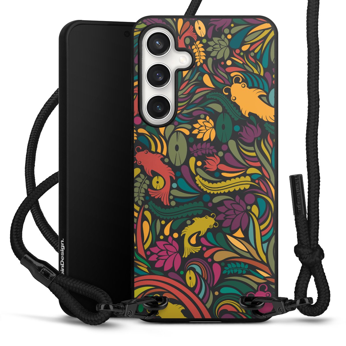We use the solid direct print process for this phone case, which is why the print area only covers the back and the edge remains unprinted. The case to wear around your neck can be ordered unprinted, fully printed, or partially printed. For your design, either choose one of our exclusive shop motifs or get creative and create your own design, for example with photos and overlays. Design your own personal trend accessory and make an individual statement on the streets!