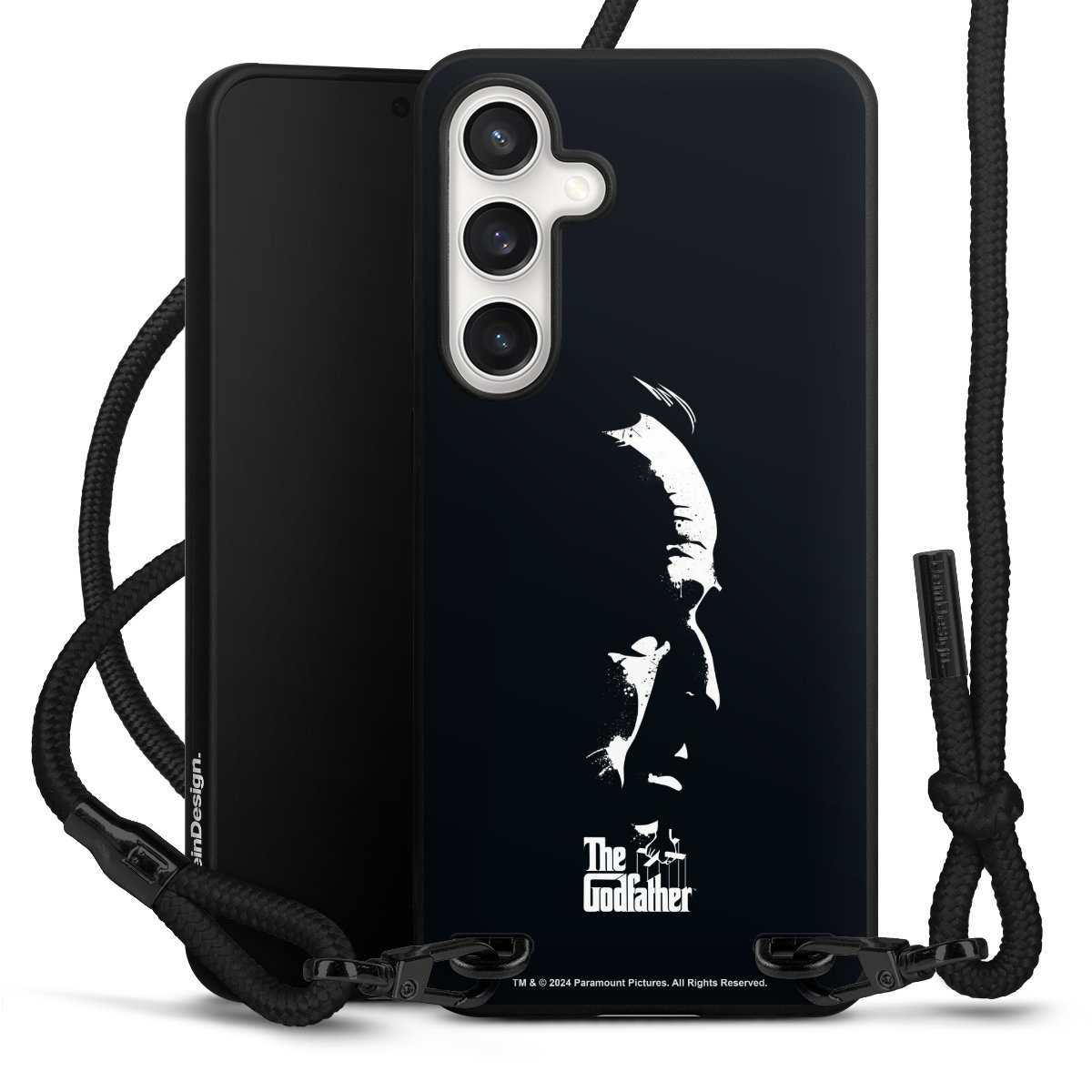 The matt black silicone case is made of flexible TPU (thermoplastic polyurethane) and offers robust protection. The durable, unbreakable material makes the cover flexible and dimensionally stable at the same time. The matte surface makes your design stand out more and is less susceptible to fingerprints and dirt. The stylish trend accessory fits comfortably in the hand and is perfectly complemented by the fabric (polyester) mobile phone strap. The braided fabric strap is approx. 1.70 metres long with a diameter of approx. 0.5 cm. Due to the special knotting technique, the length of the strap can be adjusted by simply pulling it, so that you can adapt it individually to your wishes. The practical case to wear around your neck is available with the fabric strap in black. As a little icing on the cake, we have provided the strap with a chic metal fastener in matt black. The strap is securely fastened to the case with loops made of high-quality genuine leather and press studs. The ends of the fabric strap are covered with metallic end caps and thus protected from fraying.