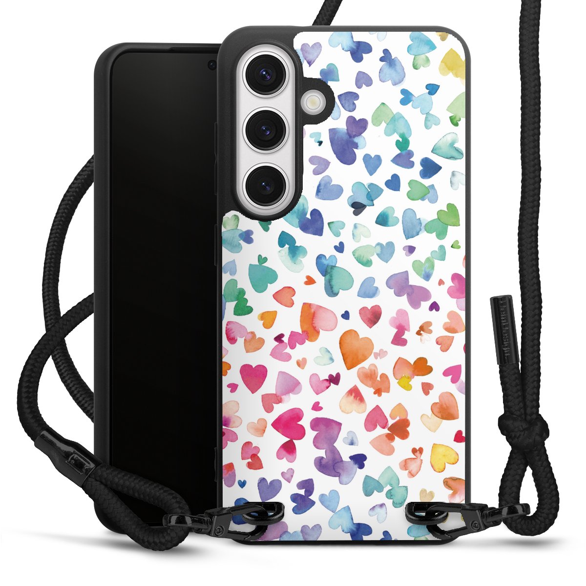 We use the solid direct print process for this phone case, which is why the print area only covers the back and the edge remains unprinted. The case to wear around your neck can be ordered unprinted, fully printed, or partially printed. For your design, either choose one of our exclusive shop motifs or get creative and create your own design, for example with photos and overlays. Design your own personal trend accessory and make an individual statement on the streets!