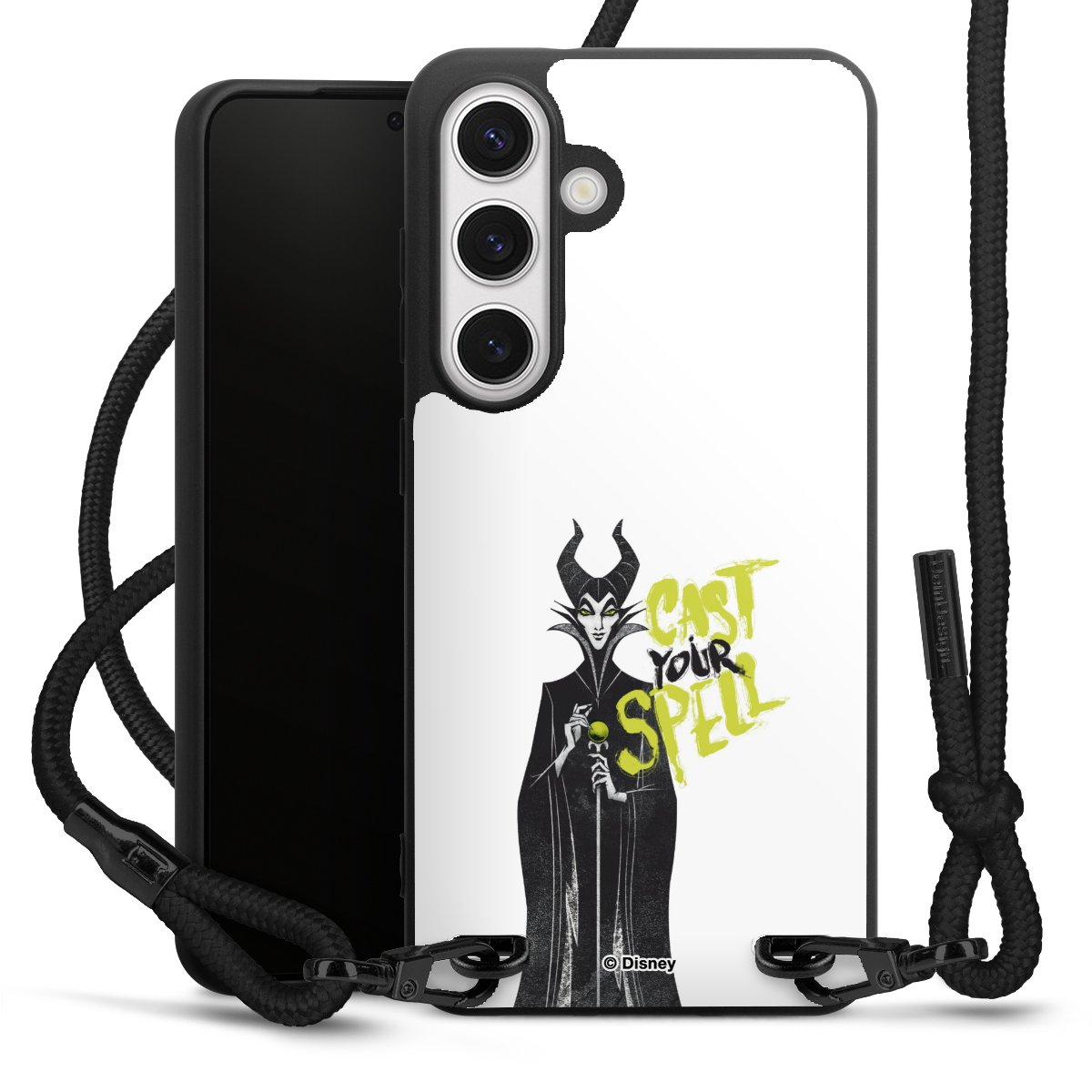 The matt black silicone case is made of flexible TPU (thermoplastic polyurethane) and offers robust protection. The durable, unbreakable material makes the cover flexible and dimensionally stable at the same time. The matte surface makes your design stand out more and is less susceptible to fingerprints and dirt. The stylish trend accessory fits comfortably in the hand and is perfectly complemented by the fabric (polyester) mobile phone strap. The braided fabric strap is approx. 1.70 metres long with a diameter of approx. 0.5 cm. Due to the special knotting technique, the length of the strap can be adjusted by simply pulling it, so that you can adapt it individually to your wishes. The practical case to wear around your neck is available with the fabric strap in black. As a little icing on the cake, we have provided the strap with a chic metal fastener in matt black. The strap is securely fastened to the case with loops made of high-quality genuine leather and press studs. The ends of the fabric strap are covered with metallic end caps and thus protected from fraying.