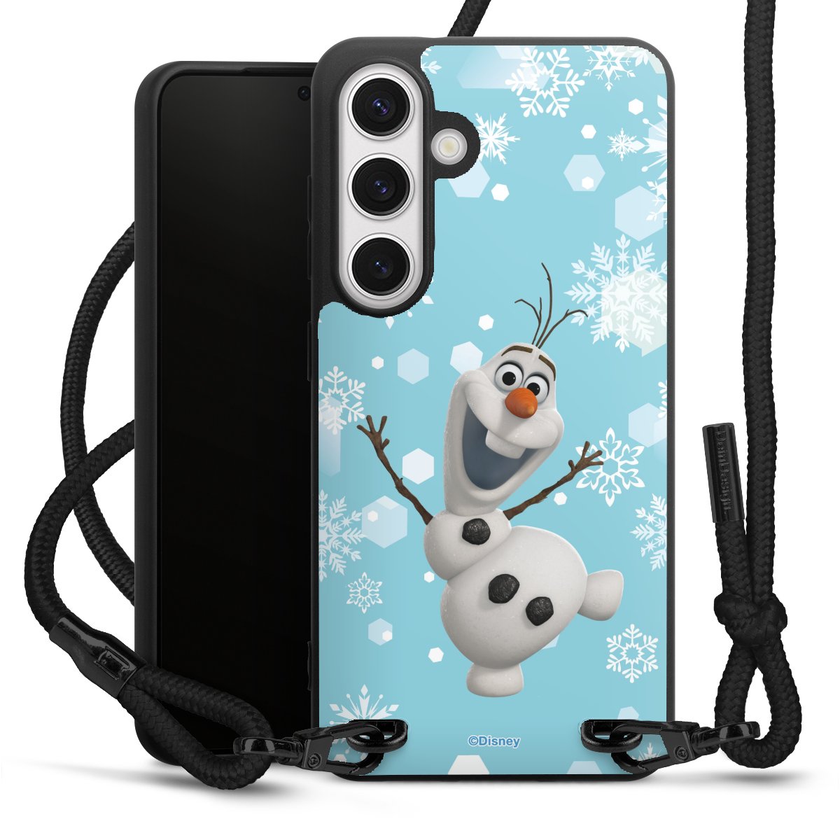 The matt black silicone case is made of flexible TPU (thermoplastic polyurethane) and offers robust protection. The durable, unbreakable material makes the cover flexible and dimensionally stable at the same time. The matte surface makes your design stand out more and is less susceptible to fingerprints and dirt. The stylish trend accessory fits comfortably in the hand and is perfectly complemented by the fabric (polyester) mobile phone strap. The braided fabric strap is approx. 1.70 metres long with a diameter of approx. 0.5 cm. Due to the special knotting technique, the length of the strap can be adjusted by simply pulling it, so that you can adapt it individually to your wishes. The practical case to wear around your neck is available with the fabric strap in black. As a little icing on the cake, we have provided the strap with a chic metal fastener in matt black. The strap is securely fastened to the case with loops made of high-quality genuine leather and press studs. The ends of the fabric strap are covered with metallic end caps and thus protected from fraying.