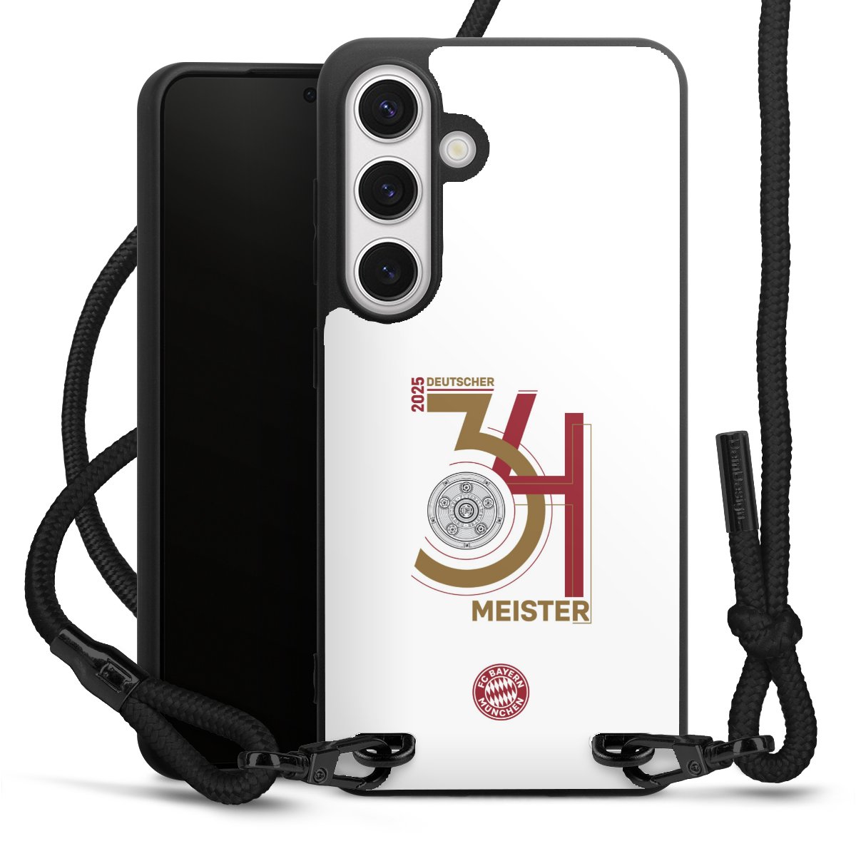 The matt black silicone case is made of flexible TPU (thermoplastic polyurethane) and offers robust protection. The durable, unbreakable material makes the cover flexible and dimensionally stable at the same time. The matte surface makes your design stand out more and is less susceptible to fingerprints and dirt. The stylish trend accessory fits comfortably in the hand and is perfectly complemented by the fabric (polyester) mobile phone strap. The braided fabric strap is approx. 1.70 metres long with a diameter of approx. 0.5 cm. Due to the special knotting technique, the length of the strap can be adjusted by simply pulling it, so that you can adapt it individually to your wishes. The practical case to wear around your neck is available with the fabric strap in black. As a little icing on the cake, we have provided the strap with a chic metal fastener in matt black. The strap is securely fastened to the case with loops made of high-quality genuine leather and press studs. The ends of the fabric strap are covered with metallic end caps and thus protected from fraying.