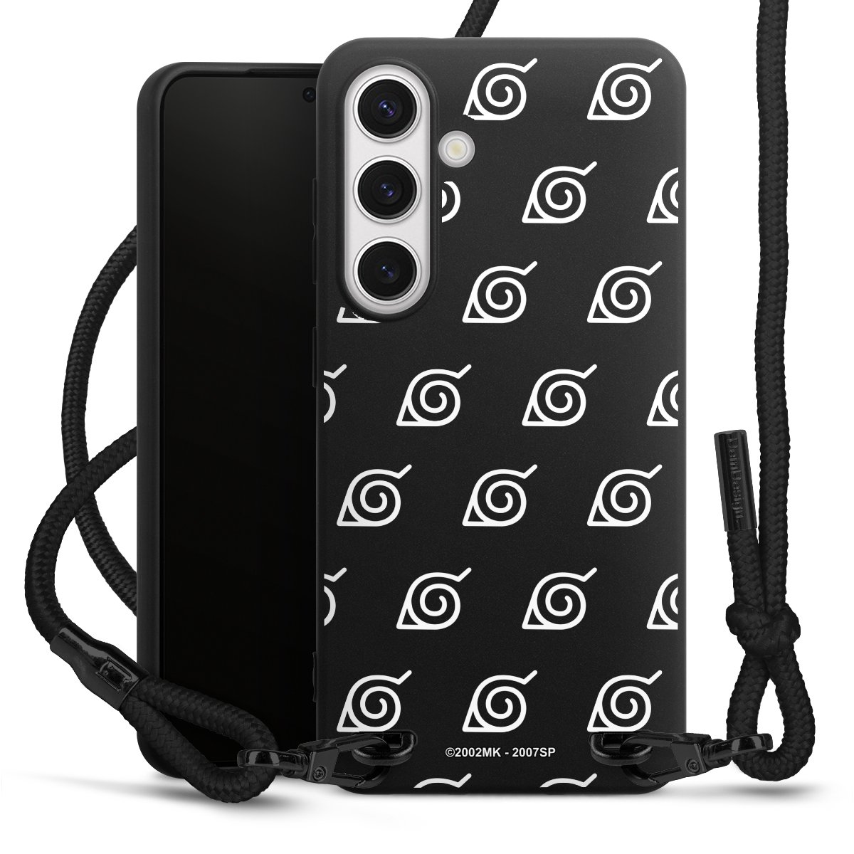 The matt black silicone case is made of flexible TPU (thermoplastic polyurethane) and offers robust protection. The durable, unbreakable material makes the cover flexible and dimensionally stable at the same time. The matte surface makes your design stand out more and is less susceptible to fingerprints and dirt. The stylish trend accessory fits comfortably in the hand and is perfectly complemented by the fabric (polyester) mobile phone strap. The braided fabric strap is approx. 1.70 metres long with a diameter of approx. 0.5 cm. Due to the special knotting technique, the length of the strap can be adjusted by simply pulling it, so that you can adapt it individually to your wishes. The practical case to wear around your neck is available with the fabric strap in black. As a little icing on the cake, we have provided the strap with a chic metal fastener in matt black. The strap is securely fastened to the case with loops made of high-quality genuine leather and press studs. The ends of the fabric strap are covered with metallic end caps and thus protected from fraying.
