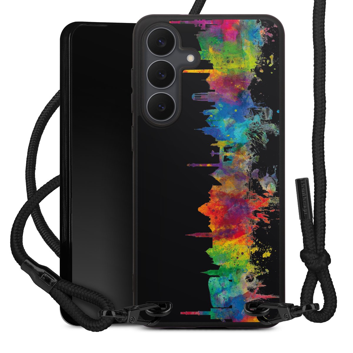 We use the solid direct print process for this phone case, which is why the print area only covers the back and the edge remains unprinted. The case to wear around your neck can be ordered unprinted, fully printed, or partially printed. For your design, either choose one of our exclusive shop motifs or get creative and create your own design, for example with photos and overlays. Design your own personal trend accessory and make an individual statement on the streets!
