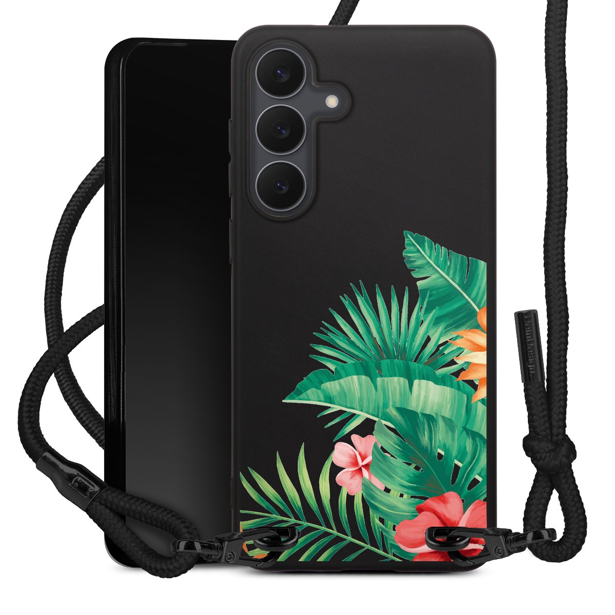 We use the solid direct print process for this phone case, which is why the print area only covers the back and the edge remains unprinted. The case to wear around your neck can be ordered unprinted, fully printed, or partially printed. For your design, either choose one of our exclusive shop motifs or get creative and create your own design, for example with photos and overlays. Design your own personal trend accessory and make an individual statement on the streets!