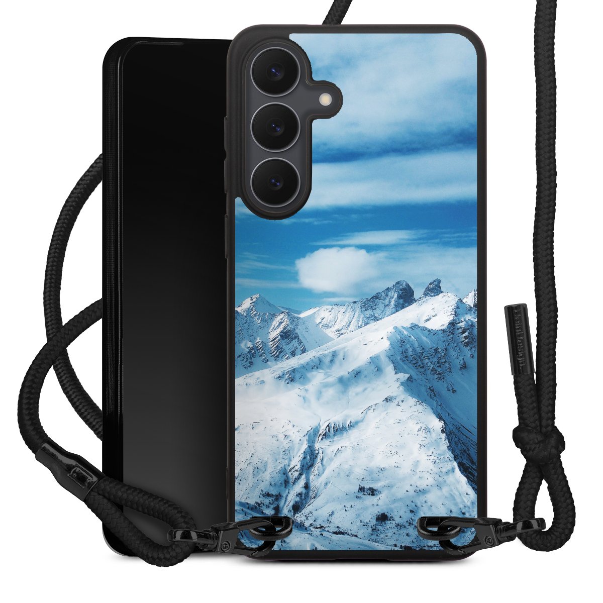 We use the solid direct print process for this phone case, which is why the print area only covers the back and the edge remains unprinted. The case to wear around your neck can be ordered unprinted, fully printed, or partially printed. For your design, either choose one of our exclusive shop motifs or get creative and create your own design, for example with photos and overlays. Design your own personal trend accessory and make an individual statement on the streets!