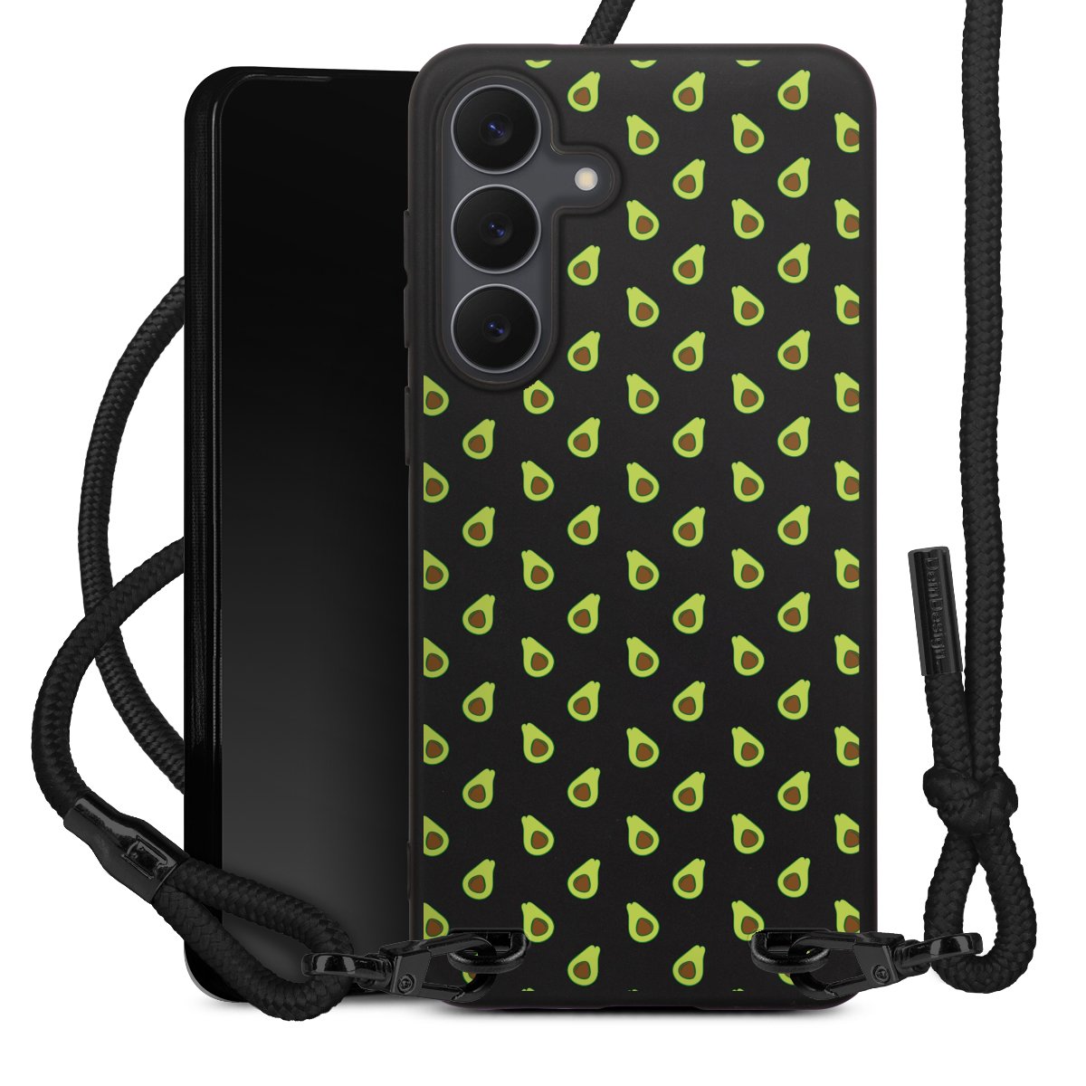 We use the solid direct print process for this phone case, which is why the print area only covers the back and the edge remains unprinted. The case to wear around your neck can be ordered unprinted, fully printed, or partially printed. For your design, either choose one of our exclusive shop motifs or get creative and create your own design, for example with photos and overlays. Design your own personal trend accessory and make an individual statement on the streets!