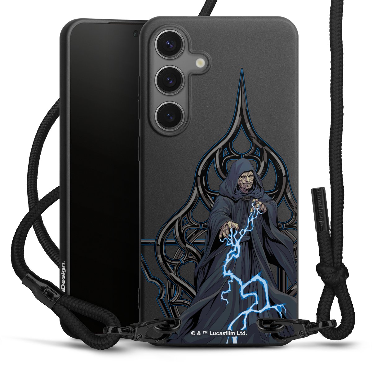 Pure Black: Phone case, fabric strap and metal details in stylish matt black.