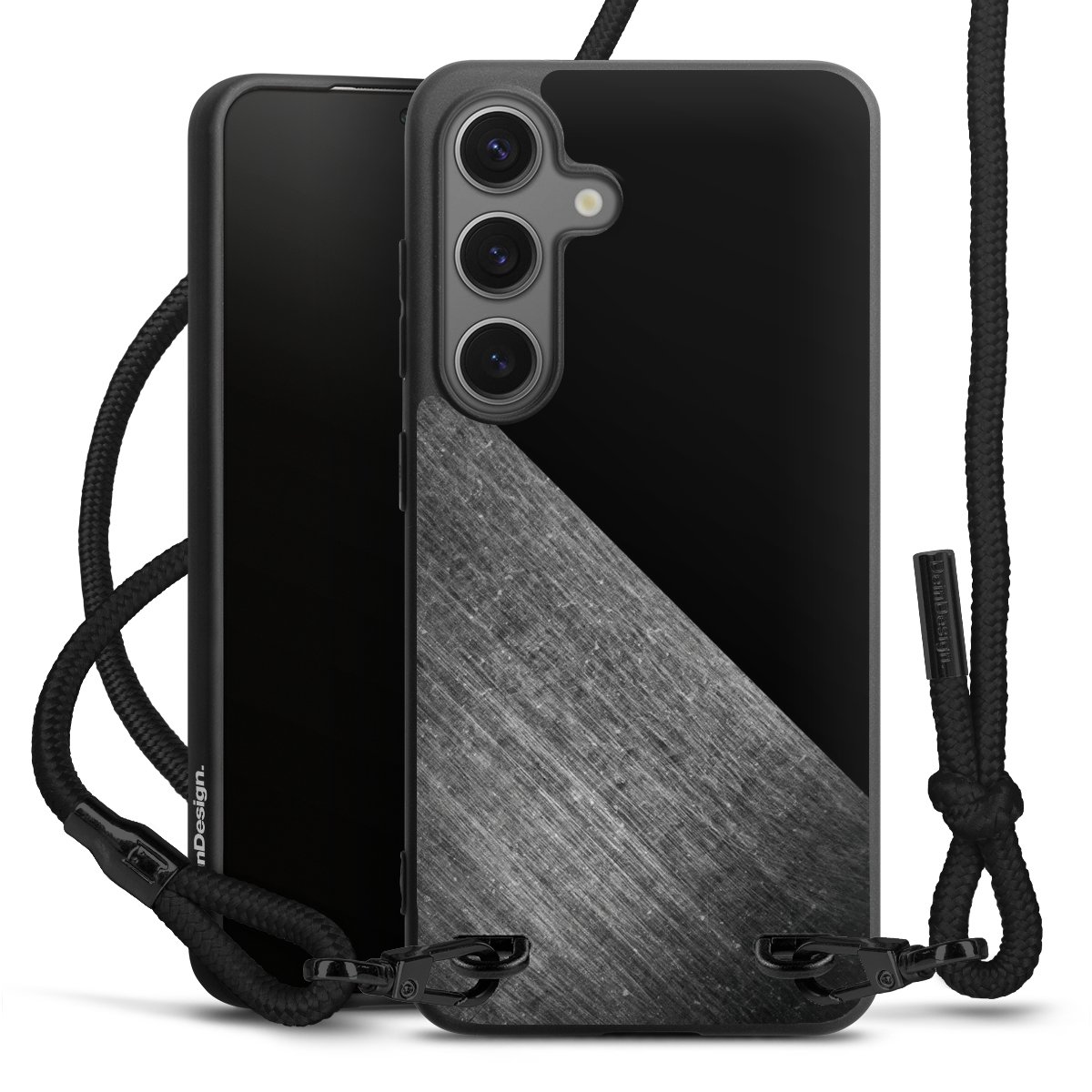 Pure Black: Phone case, fabric strap and metal details in stylish matt black.