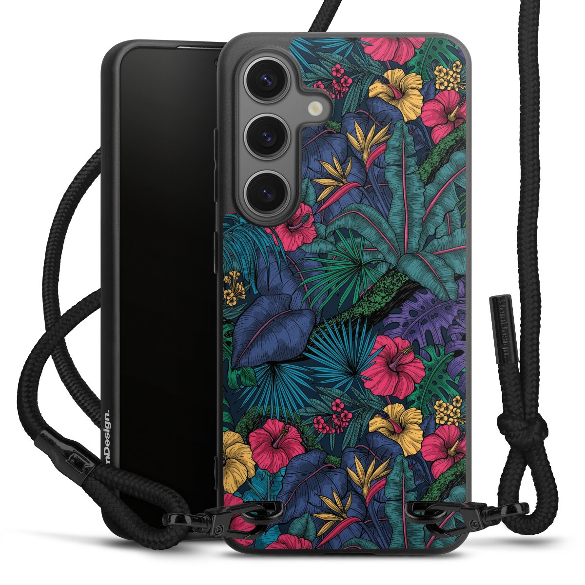 We use the solid direct print process for this phone case, which is why the print area only covers the back and the edge remains unprinted. The case to wear around your neck can be ordered unprinted, fully printed, or partially printed. For your design, either choose one of our exclusive shop motifs or get creative and create your own design, for example with photos and overlays. Design your own personal trend accessory and make an individual statement on the streets!