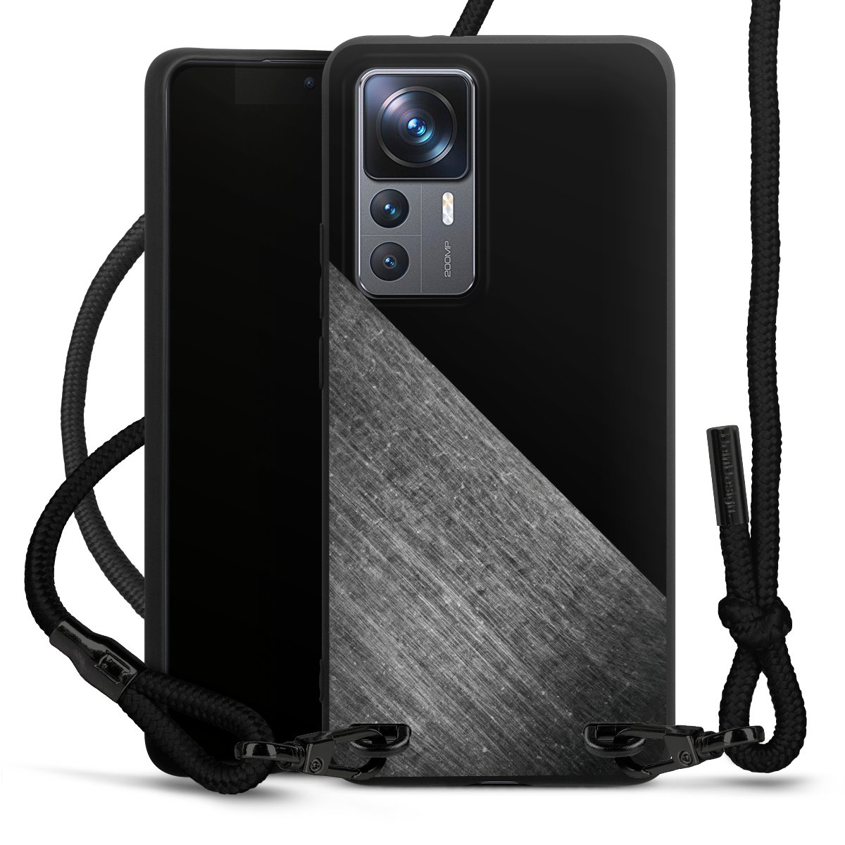 Pure Black: Phone case, fabric strap and metal details in stylish matt black.
