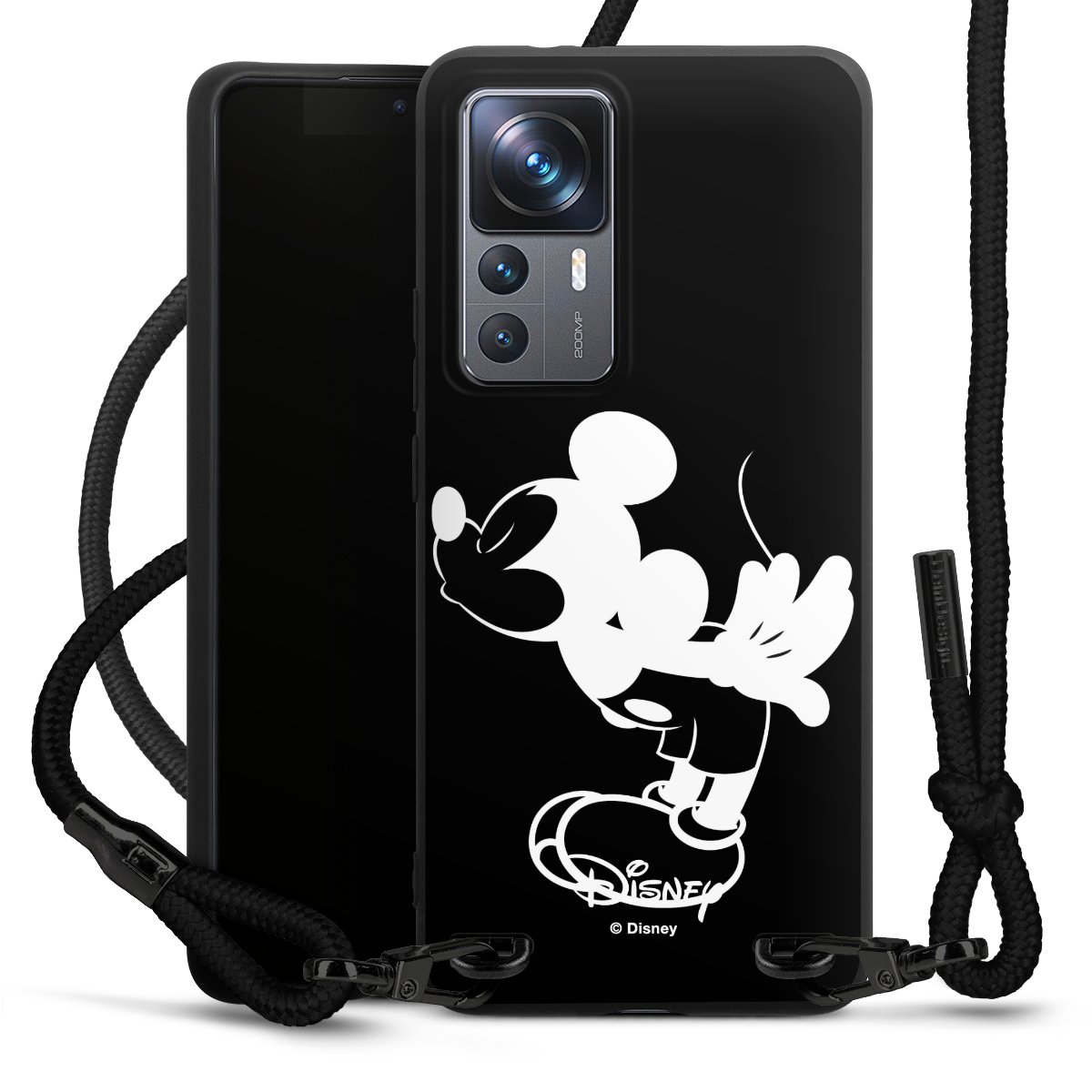 The matt black silicone case is made of flexible TPU (thermoplastic polyurethane) and offers robust protection. The durable, unbreakable material makes the cover flexible and dimensionally stable at the same time. The matte surface makes your design stand out more and is less susceptible to fingerprints and dirt. The stylish trend accessory fits comfortably in the hand and is perfectly complemented by the fabric (polyester) mobile phone strap. The braided fabric strap is approx. 1.70 metres long with a diameter of approx. 0.5 cm. Due to the special knotting technique, the length of the strap can be adjusted by simply pulling it, so that you can adapt it individually to your wishes. The practical case to wear around your neck is available with the fabric strap in black. As a little icing on the cake, we have provided the strap with a chic metal fastener in matt black. The strap is securely fastened to the case with loops made of high-quality genuine leather and press studs. The ends of the fabric strap are covered with metallic end caps and thus protected from fraying.