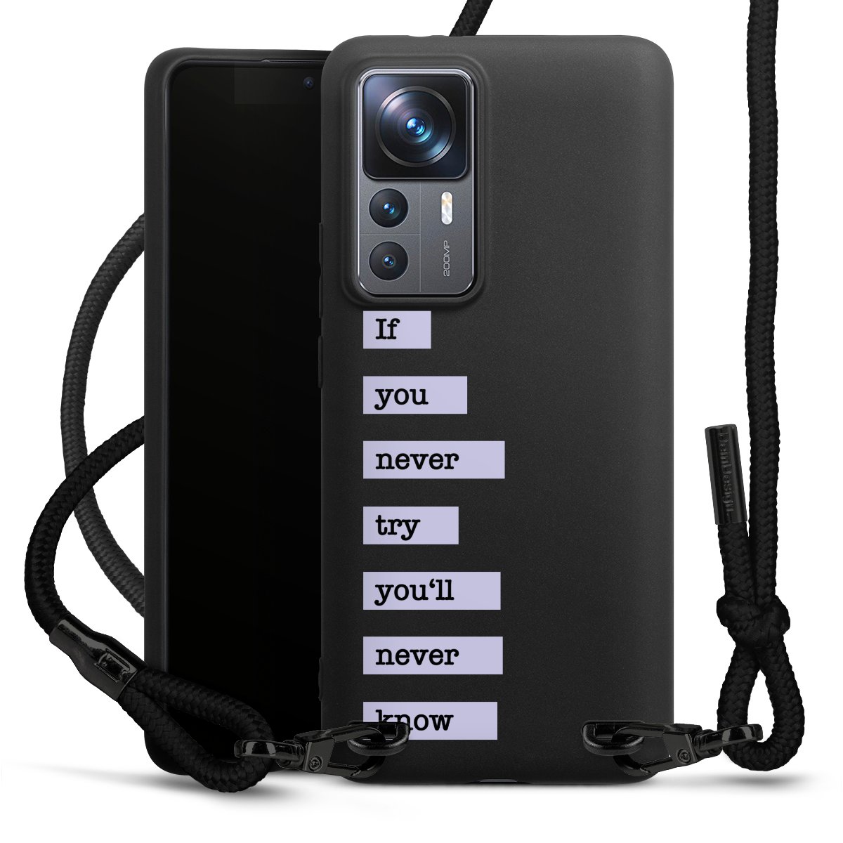 We use the solid direct print process for this phone case, which is why the print area only covers the back and the edge remains unprinted. The case to wear around your neck can be ordered unprinted, fully printed, or partially printed. For your design, either choose one of our exclusive shop motifs or get creative and create your own design, for example with photos and overlays. Design your own personal trend accessory and make an individual statement on the streets!