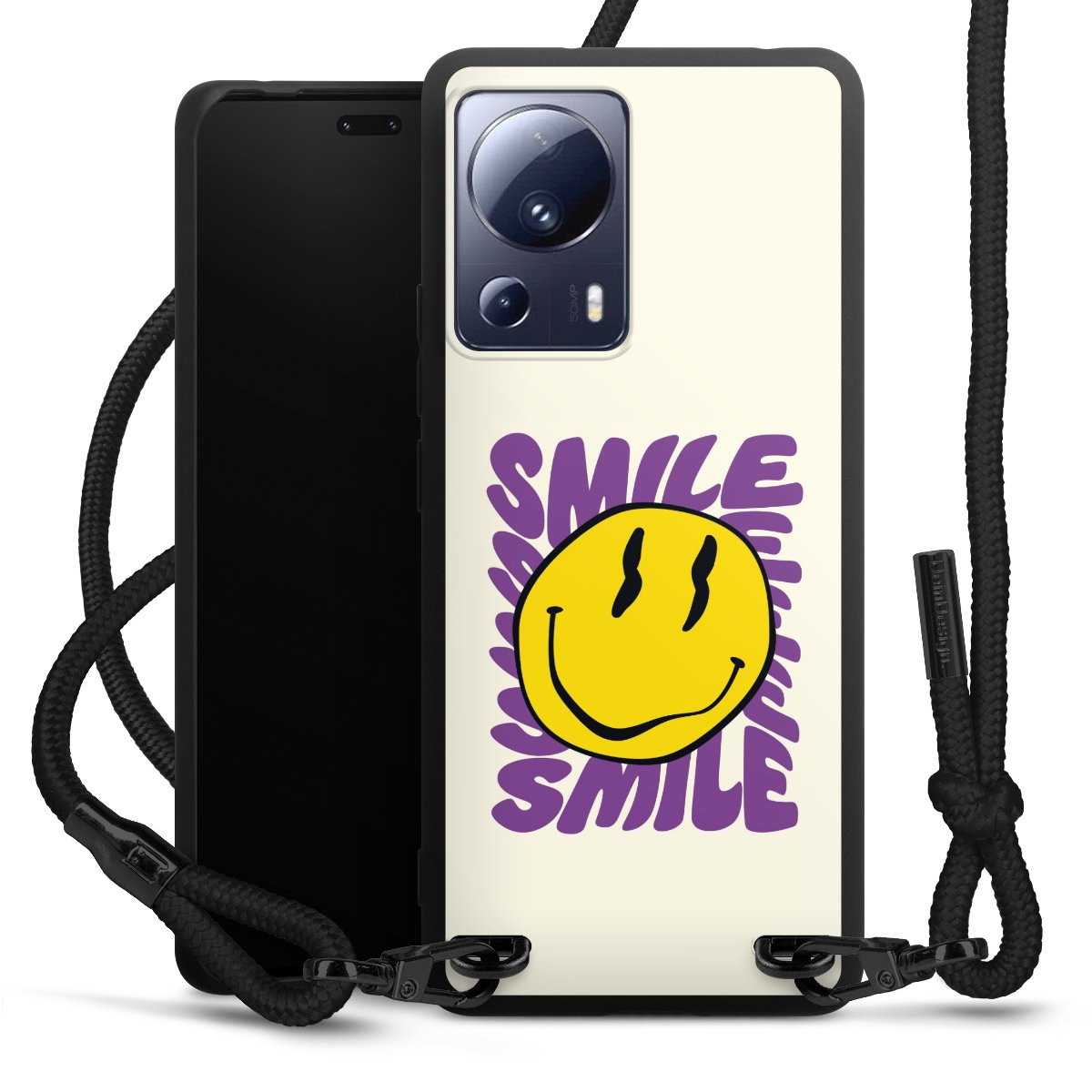 We use the solid direct print process for this phone case, which is why the print area only covers the back and the edge remains unprinted. The case to wear around your neck can be ordered unprinted, fully printed, or partially printed. For your design, either choose one of our exclusive shop motifs or get creative and create your own design, for example with photos and overlays. Design your own personal trend accessory and make an individual statement on the streets!