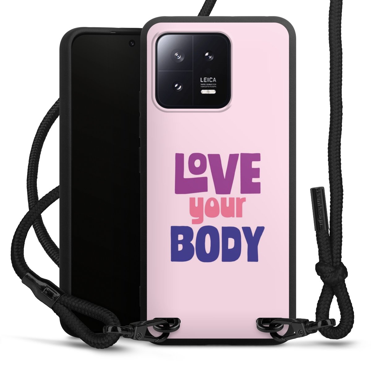 We use the solid direct print process for this phone case, which is why the print area only covers the back and the edge remains unprinted. The case to wear around your neck can be ordered unprinted, fully printed, or partially printed. For your design, either choose one of our exclusive shop motifs or get creative and create your own design, for example with photos and overlays. Design your own personal trend accessory and make an individual statement on the streets!