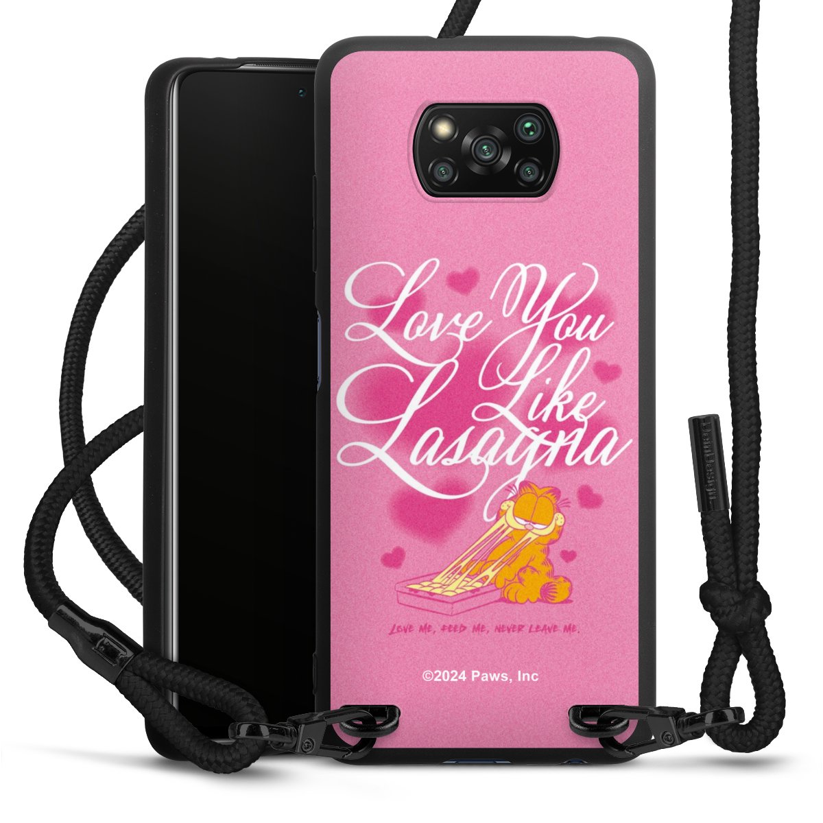 Pure Black: Phone case, fabric strap and metal details in stylish matt black.