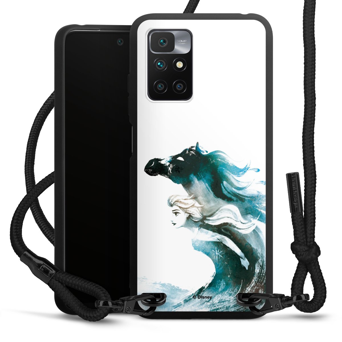 The matt black silicone case is made of flexible TPU (thermoplastic polyurethane) and offers robust protection. The durable, unbreakable material makes the cover flexible and dimensionally stable at the same time. The matte surface makes your design stand out more and is less susceptible to fingerprints and dirt. The stylish trend accessory fits comfortably in the hand and is perfectly complemented by the fabric (polyester) mobile phone strap. The braided fabric strap is approx. 1.70 metres long with a diameter of approx. 0.5 cm. Due to the special knotting technique, the length of the strap can be adjusted by simply pulling it, so that you can adapt it individually to your wishes. The practical case to wear around your neck is available with the fabric strap in black. As a little icing on the cake, we have provided the strap with a chic metal fastener in matt black. The strap is securely fastened to the case with loops made of high-quality genuine leather and press studs. The ends of the fabric strap are covered with metallic end caps and thus protected from fraying.