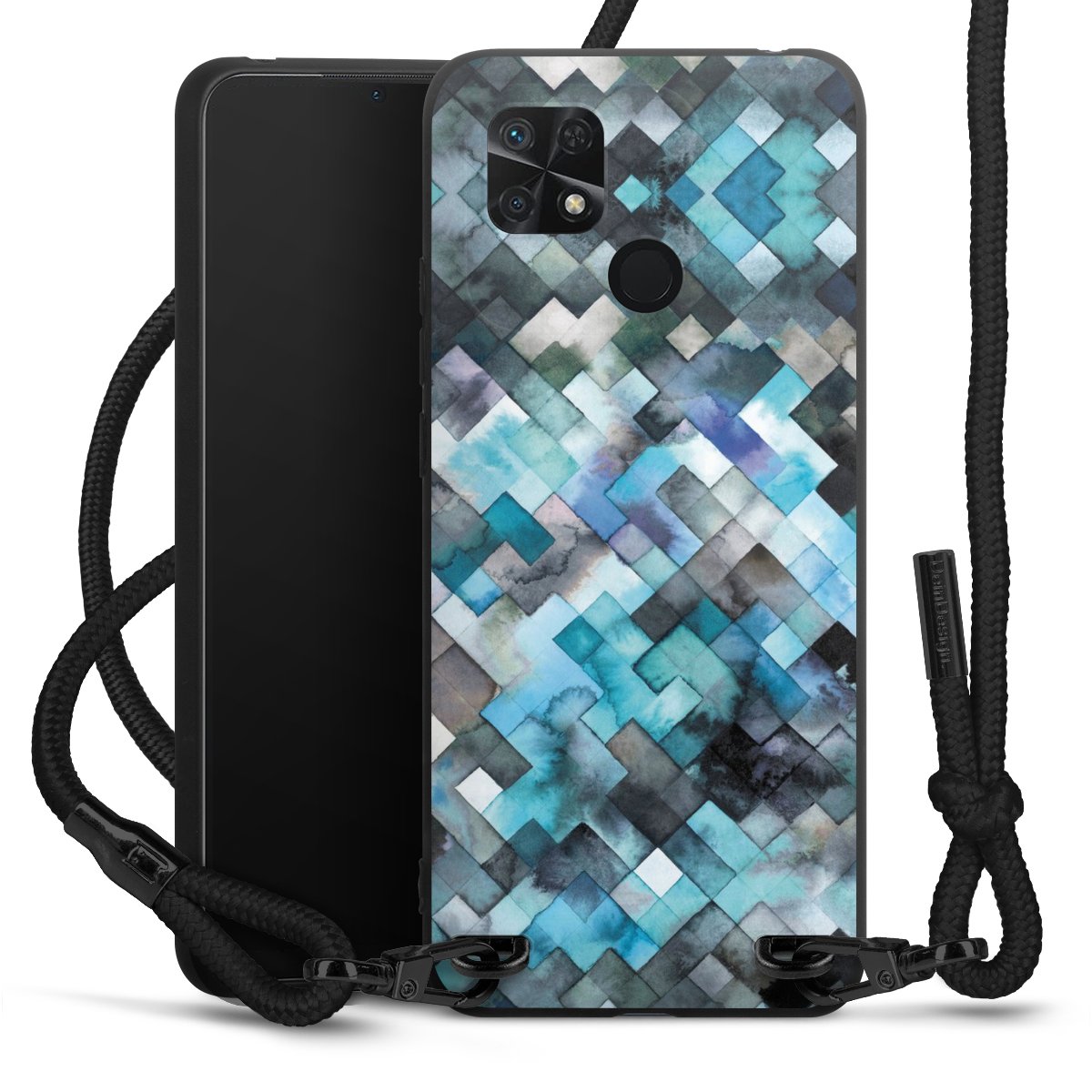 We use the solid direct print process for this phone case, which is why the print area only covers the back and the edge remains unprinted. The case to wear around your neck can be ordered unprinted, fully printed, or partially printed. For your design, either choose one of our exclusive shop motifs or get creative and create your own design, for example with photos and overlays. Design your own personal trend accessory and make an individual statement on the streets!
