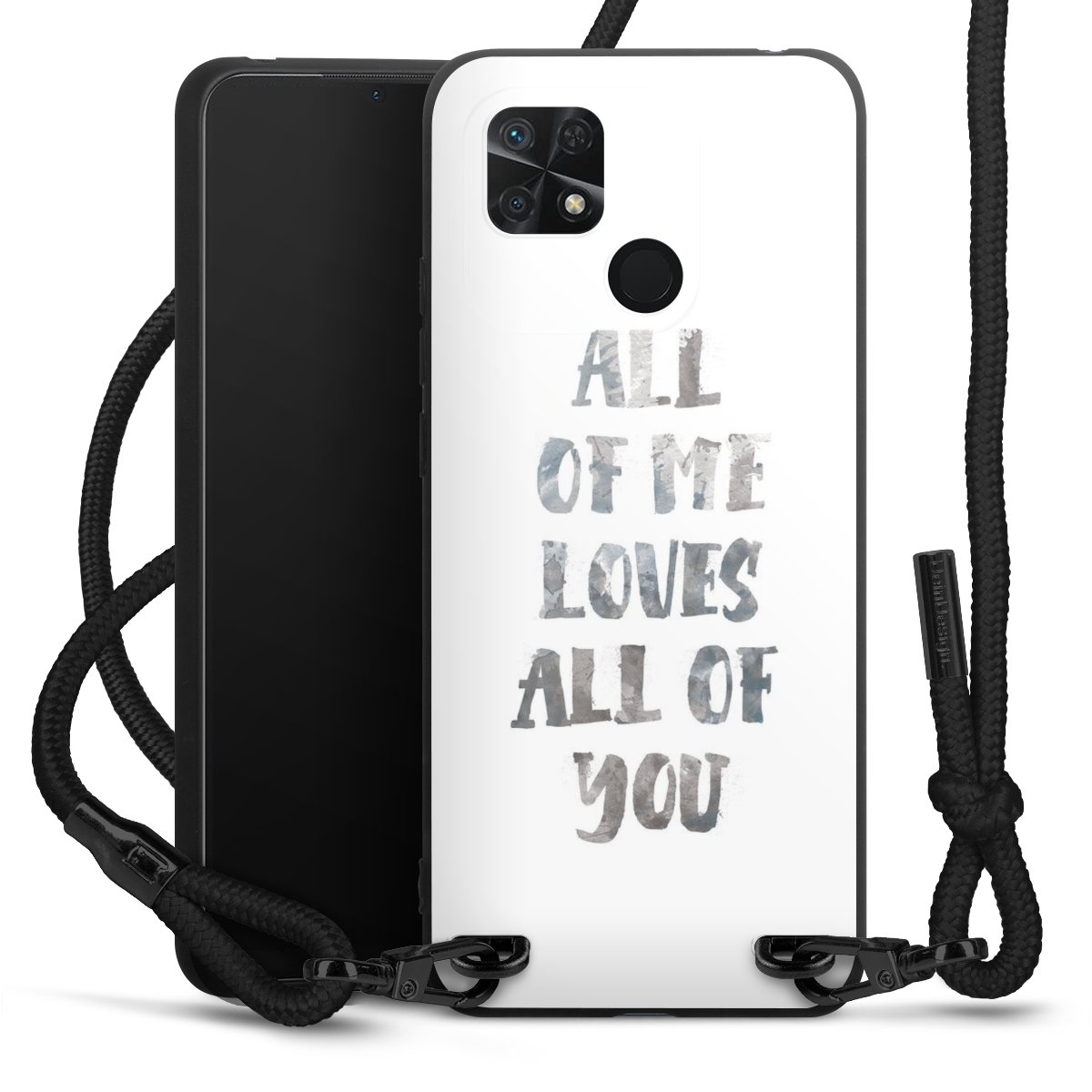 The matt black silicone case is made of flexible TPU (thermoplastic polyurethane) and offers robust protection. The durable, unbreakable material makes the cover flexible and dimensionally stable at the same time. The matte surface makes your design stand out more and is less susceptible to fingerprints and dirt. The stylish trend accessory fits comfortably in the hand and is perfectly complemented by the fabric (polyester) mobile phone strap. The braided fabric strap is approx. 1.70 metres long with a diameter of approx. 0.5 cm. Due to the special knotting technique, the length of the strap can be adjusted by simply pulling it, so that you can adapt it individually to your wishes. The practical case to wear around your neck is available with the fabric strap in black. As a little icing on the cake, we have provided the strap with a chic metal fastener in matt black. The strap is securely fastened to the case with loops made of high-quality genuine leather and press studs. The ends of the fabric strap are covered with metallic end caps and thus protected from fraying.