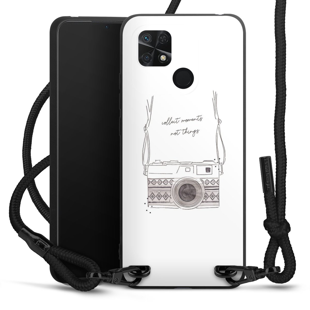 We use the solid direct print process for this phone case, which is why the print area only covers the back and the edge remains unprinted. The case to wear around your neck can be ordered unprinted, fully printed, or partially printed. For your design, either choose one of our exclusive shop motifs or get creative and create your own design, for example with photos and overlays. Design your own personal trend accessory and make an individual statement on the streets!