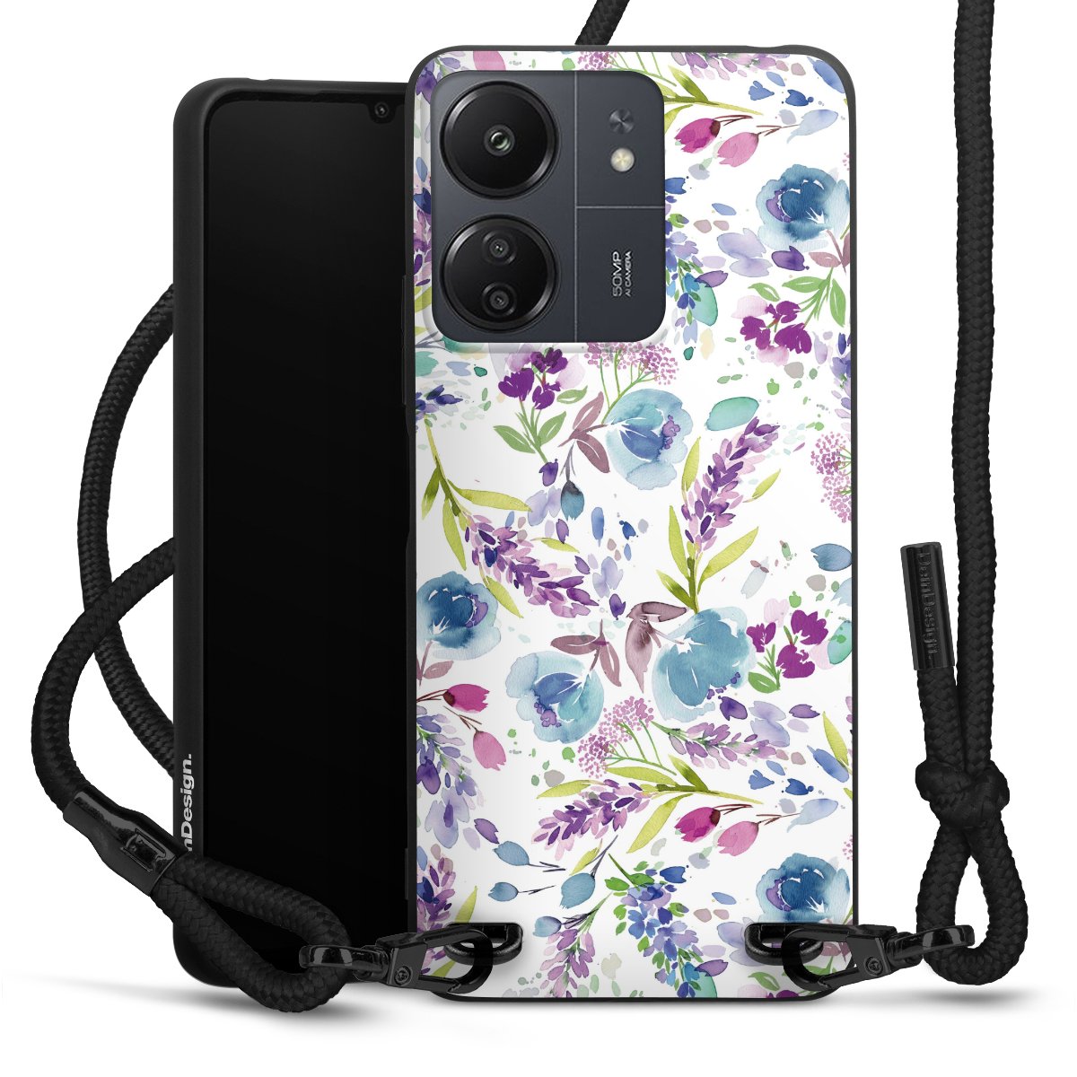 We use the solid direct print process for this phone case, which is why the print area only covers the back and the edge remains unprinted. The case to wear around your neck can be ordered unprinted, fully printed, or partially printed. For your design, either choose one of our exclusive shop motifs or get creative and create your own design, for example with photos and overlays. Design your own personal trend accessory and make an individual statement on the streets!