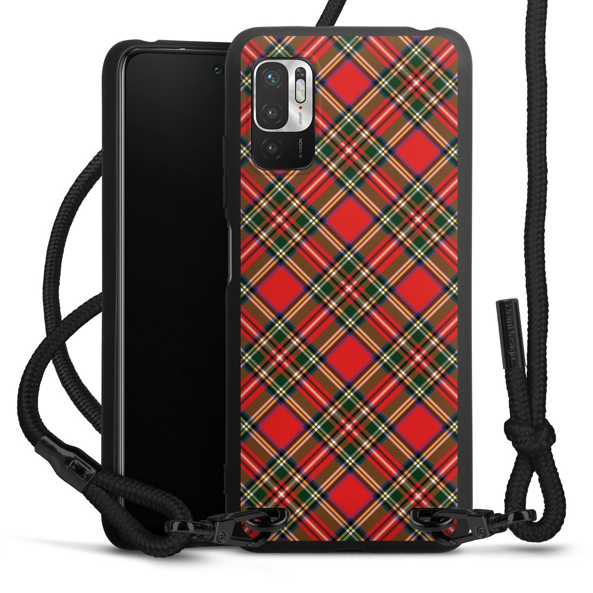 The matt black silicone case is made of flexible TPU (thermoplastic polyurethane) and offers robust protection. The durable, unbreakable material makes the cover flexible and dimensionally stable at the same time. The matte surface makes your design stand out more and is less susceptible to fingerprints and dirt. The stylish trend accessory fits comfortably in the hand and is perfectly complemented by the fabric (polyester) mobile phone strap. The braided fabric strap is approx. 1.70 metres long with a diameter of approx. 0.5 cm. Due to the special knotting technique, the length of the strap can be adjusted by simply pulling it, so that you can adapt it individually to your wishes. The practical case to wear around your neck is available with the fabric strap in black. As a little icing on the cake, we have provided the strap with a chic metal fastener in matt black. The strap is securely fastened to the case with loops made of high-quality genuine leather and press studs. The ends of the fabric strap are covered with metallic end caps and thus protected from fraying.
