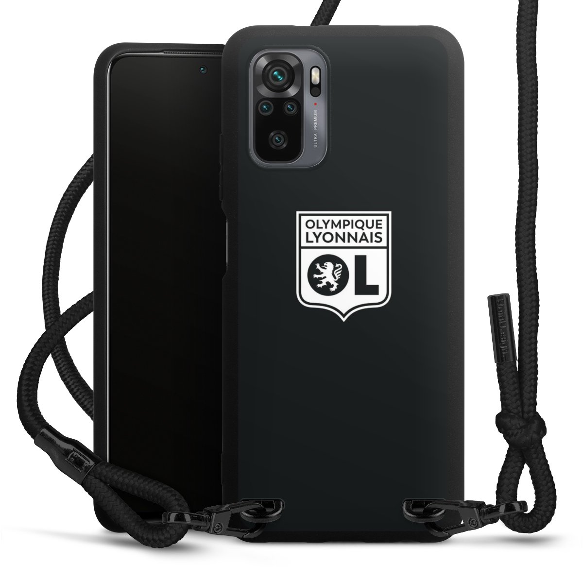 The matt black silicone case is made of flexible TPU (thermoplastic polyurethane) and offers robust protection. The durable, unbreakable material makes the cover flexible and dimensionally stable at the same time. The matte surface makes your design stand out more and is less susceptible to fingerprints and dirt. The stylish trend accessory fits comfortably in the hand and is perfectly complemented by the fabric (polyester) mobile phone strap. The braided fabric strap is approx. 1.70 metres long with a diameter of approx. 0.5 cm. Due to the special knotting technique, the length of the strap can be adjusted by simply pulling it, so that you can adapt it individually to your wishes. The practical case to wear around your neck is available with the fabric strap in black. As a little icing on the cake, we have provided the strap with a chic metal fastener in matt black. The strap is securely fastened to the case with loops made of high-quality genuine leather and press studs. The ends of the fabric strap are covered with metallic end caps and thus protected from fraying.