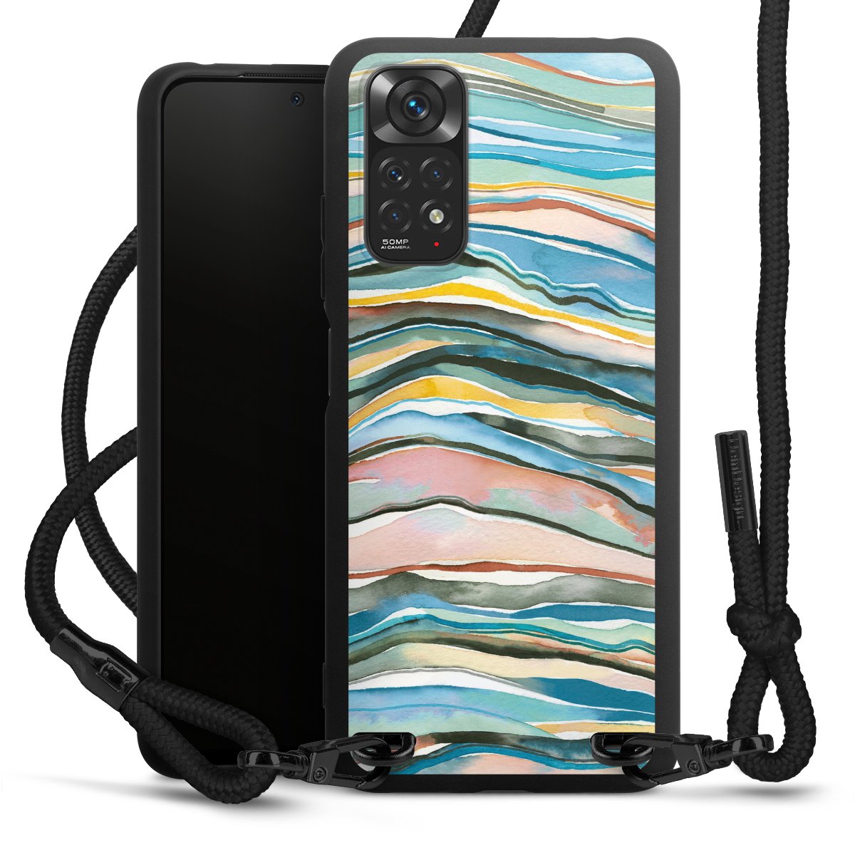 We use the solid direct print process for this phone case, which is why the print area only covers the back and the edge remains unprinted. The case to wear around your neck can be ordered unprinted, fully printed, or partially printed. For your design, either choose one of our exclusive shop motifs or get creative and create your own design, for example with photos and overlays. Design your own personal trend accessory and make an individual statement on the streets!