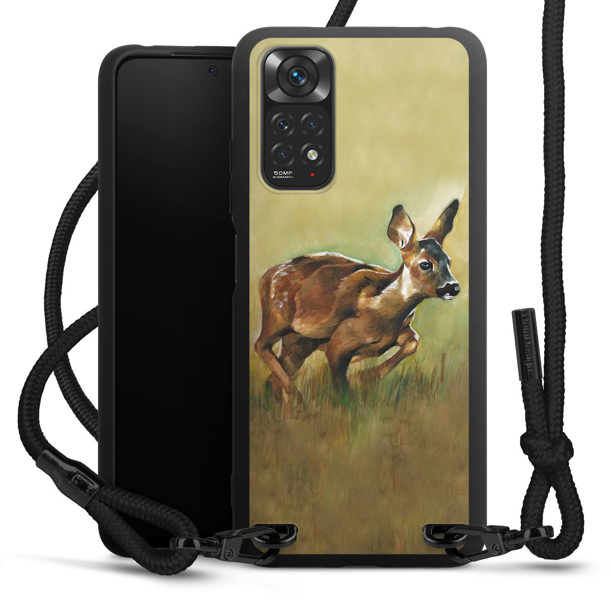 We use the solid direct print process for this phone case, which is why the print area only covers the back and the edge remains unprinted. The case to wear around your neck can be ordered unprinted, fully printed, or partially printed. For your design, either choose one of our exclusive shop motifs or get creative and create your own design, for example with photos and overlays. Design your own personal trend accessory and make an individual statement on the streets!