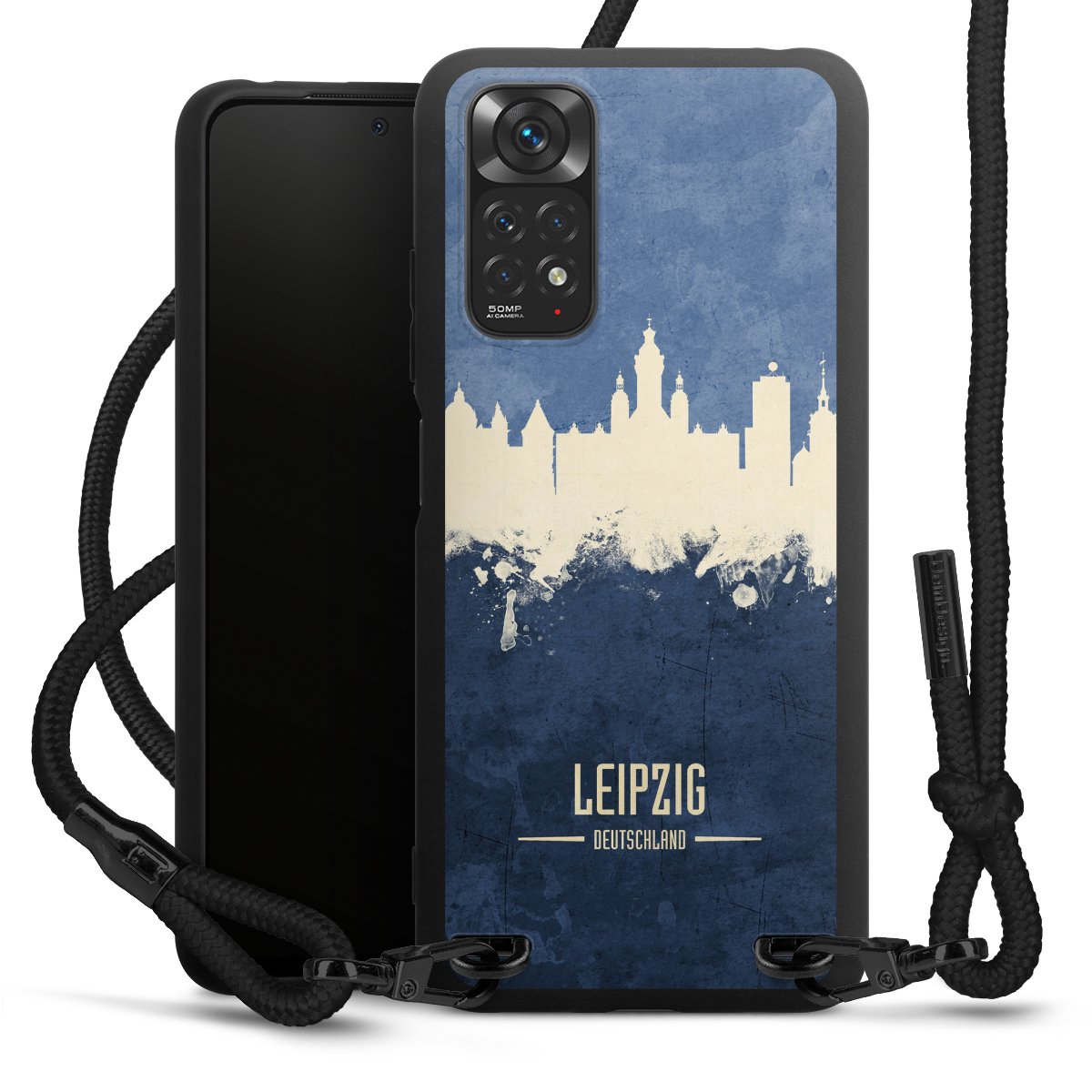We use the solid direct print process for this phone case, which is why the print area only covers the back and the edge remains unprinted. The case to wear around your neck can be ordered unprinted, fully printed, or partially printed. For your design, either choose one of our exclusive shop motifs or get creative and create your own design, for example with photos and overlays. Design your own personal trend accessory and make an individual statement on the streets!