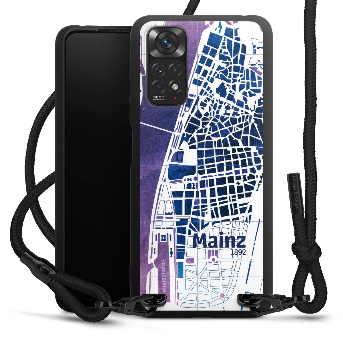 We use the solid direct print process for this phone case, which is why the print area only covers the back and the edge remains unprinted. The case to wear around your neck can be ordered unprinted, fully printed, or partially printed. For your design, either choose one of our exclusive shop motifs or get creative and create your own design, for example with photos and overlays. Design your own personal trend accessory and make an individual statement on the streets!