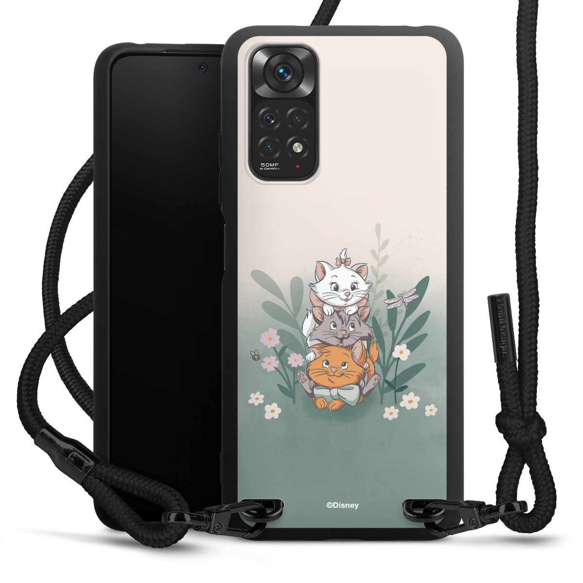 The matt black silicone case is made of flexible TPU (thermoplastic polyurethane) and offers robust protection. The durable, unbreakable material makes the cover flexible and dimensionally stable at the same time. The matte surface makes your design stand out more and is less susceptible to fingerprints and dirt. The stylish trend accessory fits comfortably in the hand and is perfectly complemented by the fabric (polyester) mobile phone strap. The braided fabric strap is approx. 1.70 metres long with a diameter of approx. 0.5 cm. Due to the special knotting technique, the length of the strap can be adjusted by simply pulling it, so that you can adapt it individually to your wishes. The practical case to wear around your neck is available with the fabric strap in black. As a little icing on the cake, we have provided the strap with a chic metal fastener in matt black. The strap is securely fastened to the case with loops made of high-quality genuine leather and press studs. The ends of the fabric strap are covered with metallic end caps and thus protected from fraying.