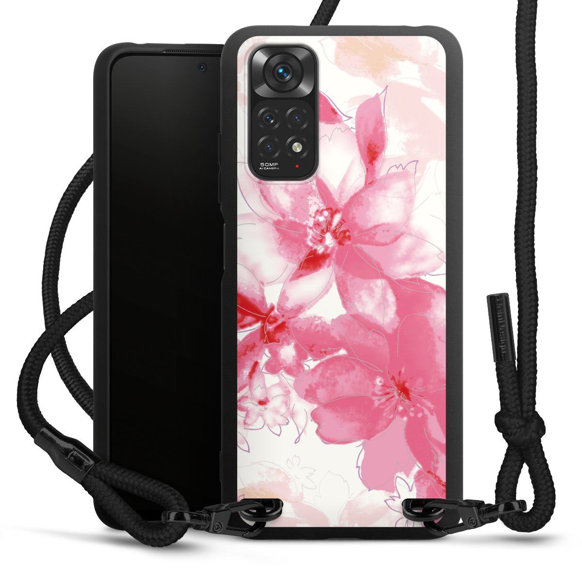 We use the solid direct print process for this phone case, which is why the print area only covers the back and the edge remains unprinted. The case to wear around your neck can be ordered unprinted, fully printed, or partially printed. For your design, either choose one of our exclusive shop motifs or get creative and create your own design, for example with photos and overlays. Design your own personal trend accessory and make an individual statement on the streets!