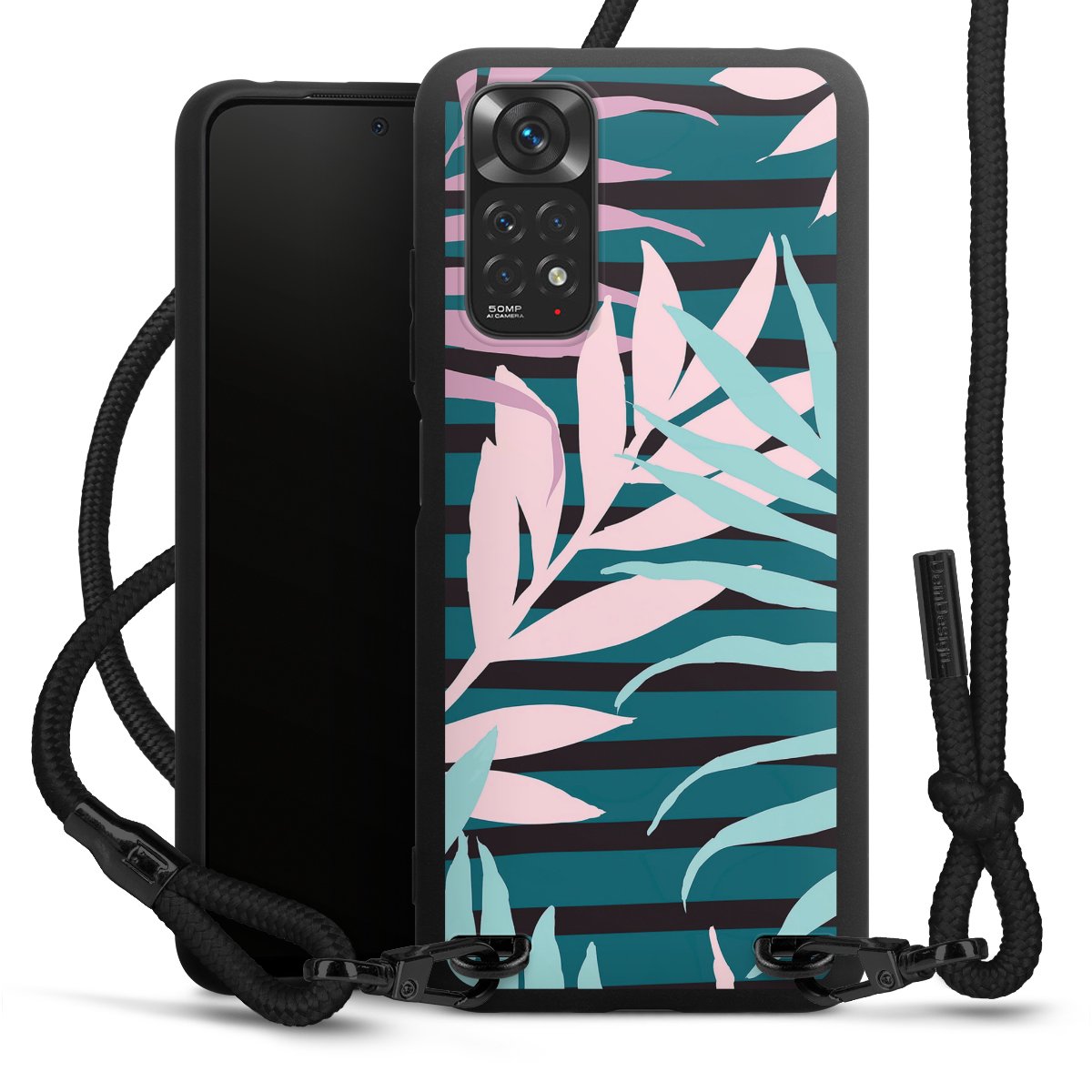 We use the solid direct print process for this phone case, which is why the print area only covers the back and the edge remains unprinted. The case to wear around your neck can be ordered unprinted, fully printed, or partially printed. For your design, either choose one of our exclusive shop motifs or get creative and create your own design, for example with photos and overlays. Design your own personal trend accessory and make an individual statement on the streets!