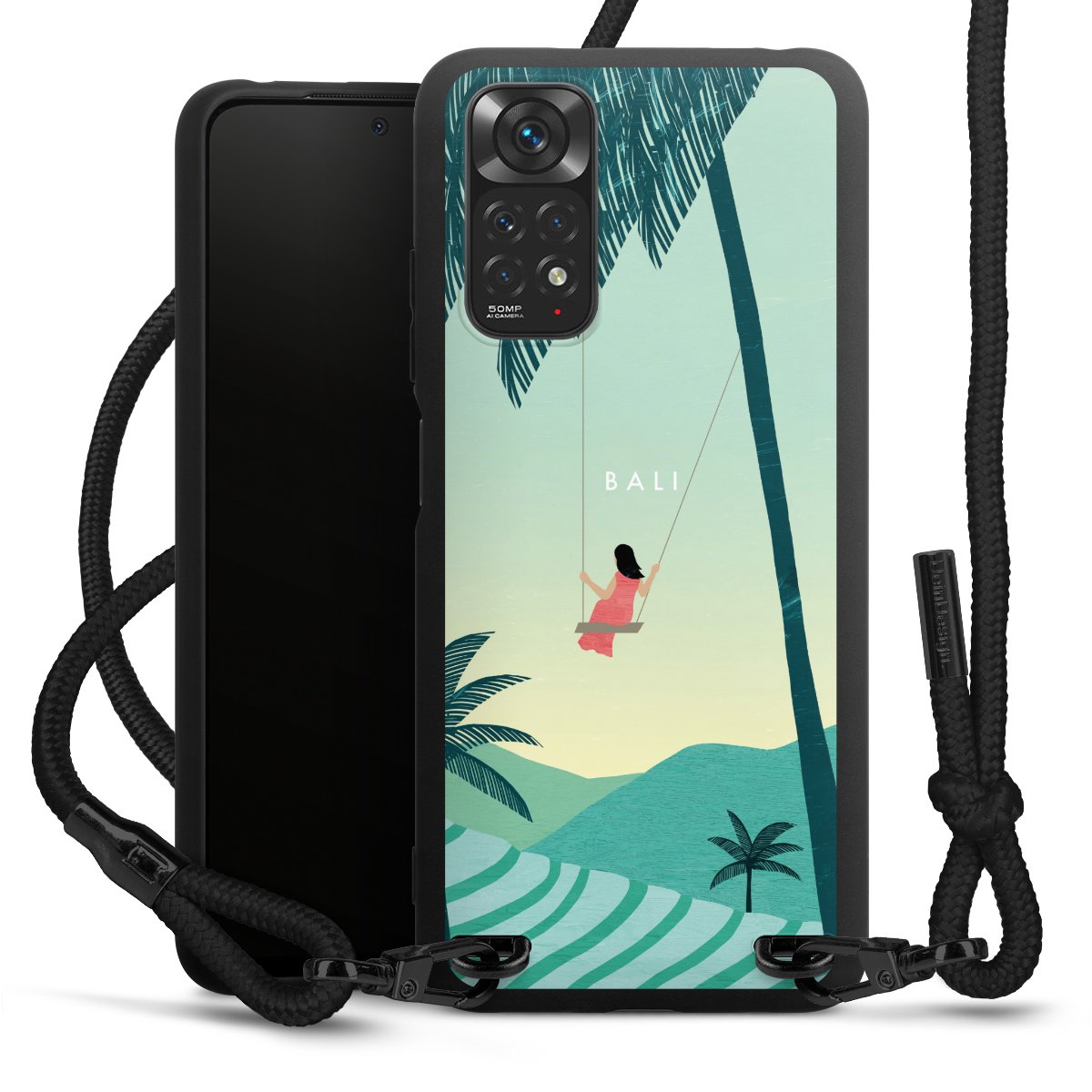 We use the solid direct print process for this phone case, which is why the print area only covers the back and the edge remains unprinted. The case to wear around your neck can be ordered unprinted, fully printed, or partially printed. For your design, either choose one of our exclusive shop motifs or get creative and create your own design, for example with photos and overlays. Design your own personal trend accessory and make an individual statement on the streets!