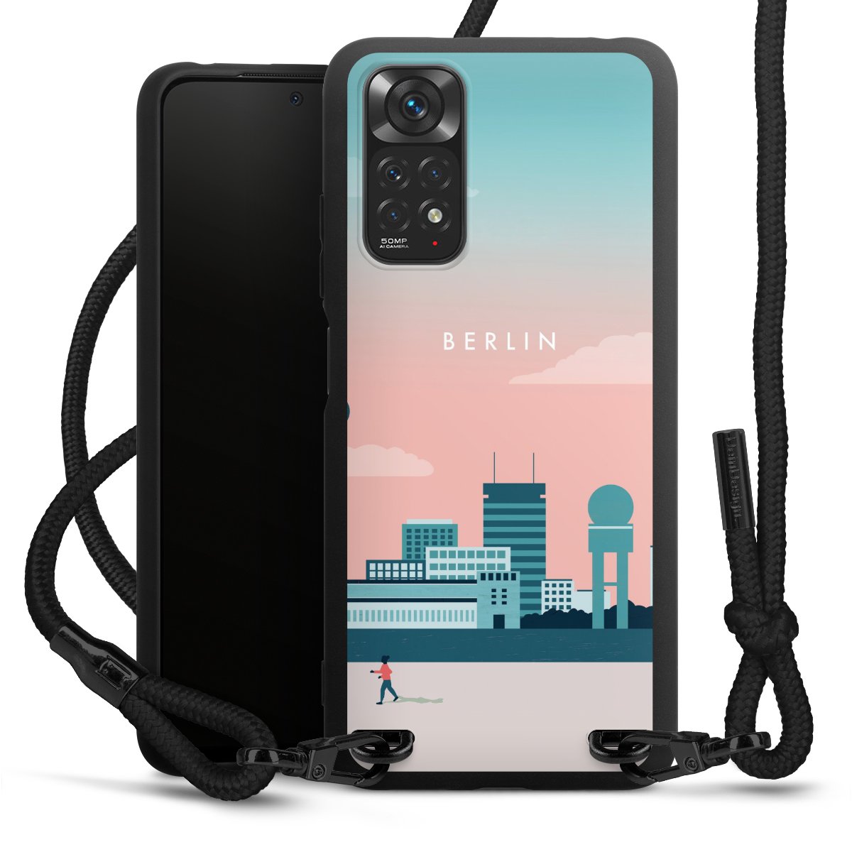 We use the solid direct print process for this phone case, which is why the print area only covers the back and the edge remains unprinted. The case to wear around your neck can be ordered unprinted, fully printed, or partially printed. For your design, either choose one of our exclusive shop motifs or get creative and create your own design, for example with photos and overlays. Design your own personal trend accessory and make an individual statement on the streets!